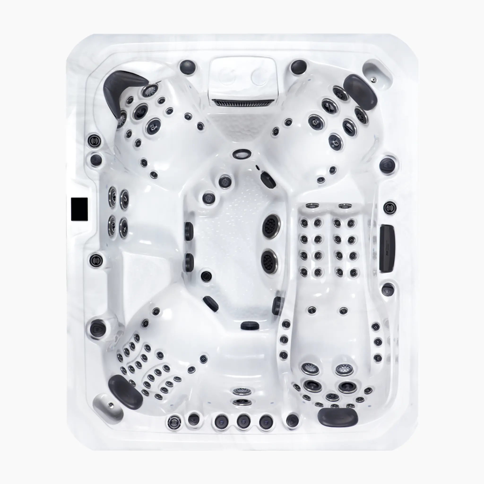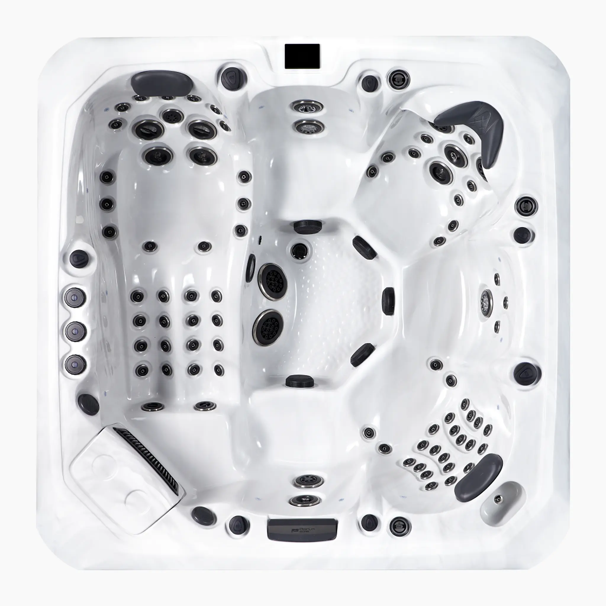 Der Tokyo Whirlpool aus der Premium Range kombiniert großzügige Abmessungen mit besonders hoher Düsenanzahl. Mit 89 Massagedüsen, drei 3-HP-Pumpen und komfortabler Sitz- und Liegeaufteilung bietet er intensive Hydromassage für bis zu sechs Personen.