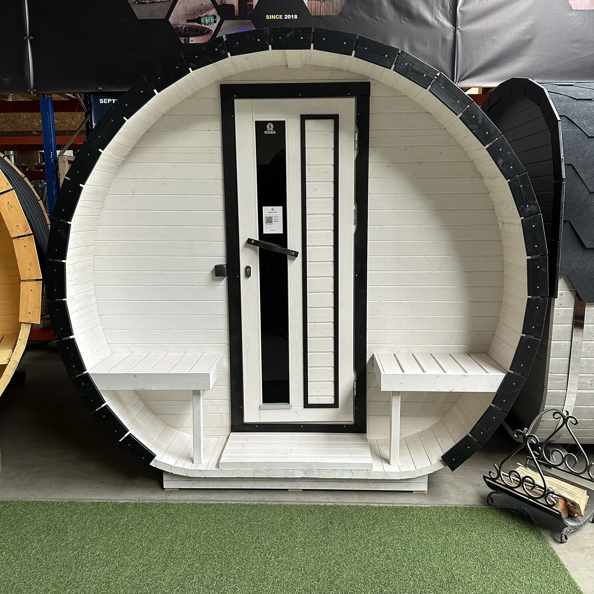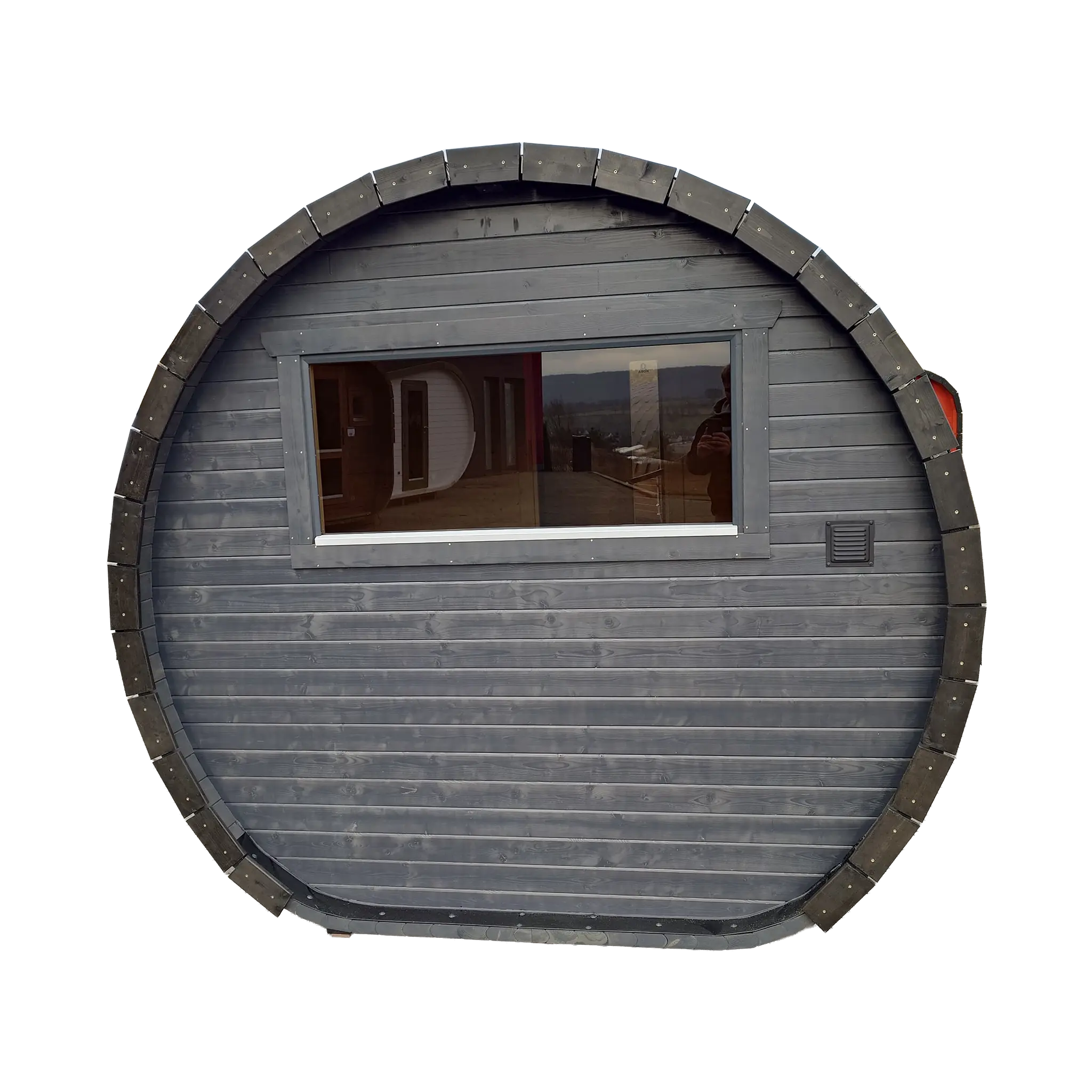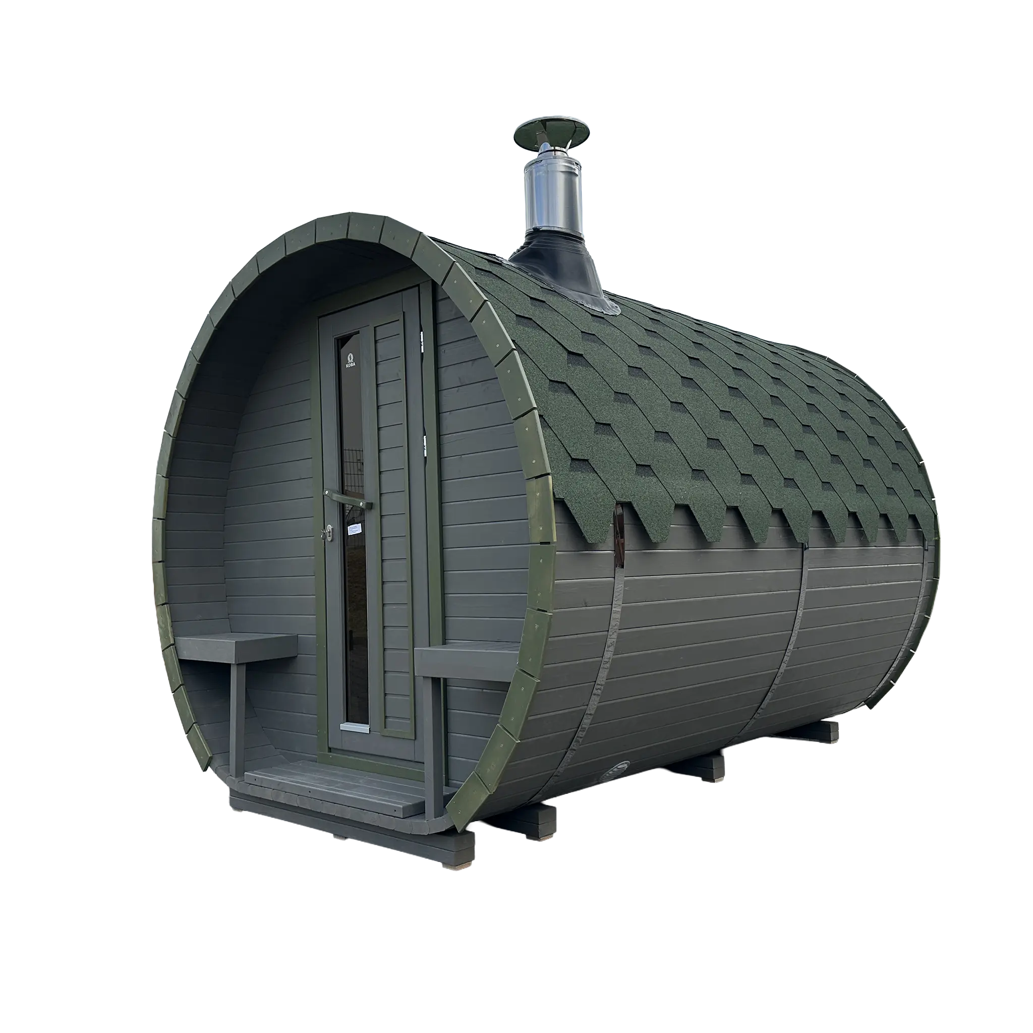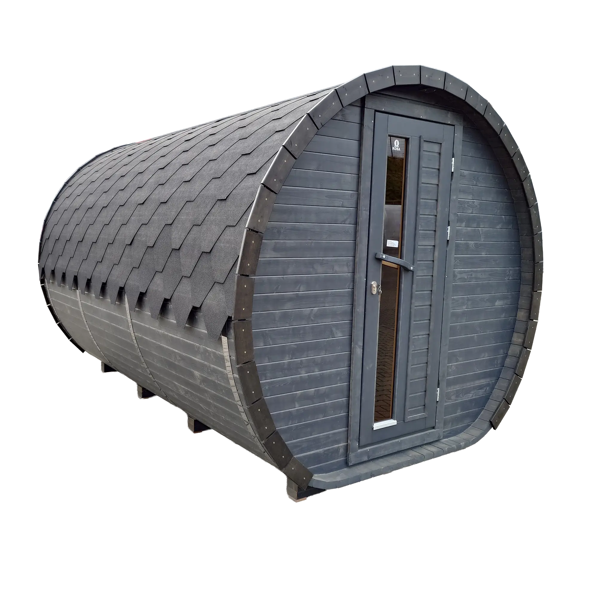 Die 3/4 Fass Gartensauna verbindet klassisches Fassdesign mit offener, moderner Bauform. Sie bietet ein intensives Saunaklima, flexible Grundrisse und eignet sich ideal für Gärten mit begrenztem oder klar definiertem Platz.