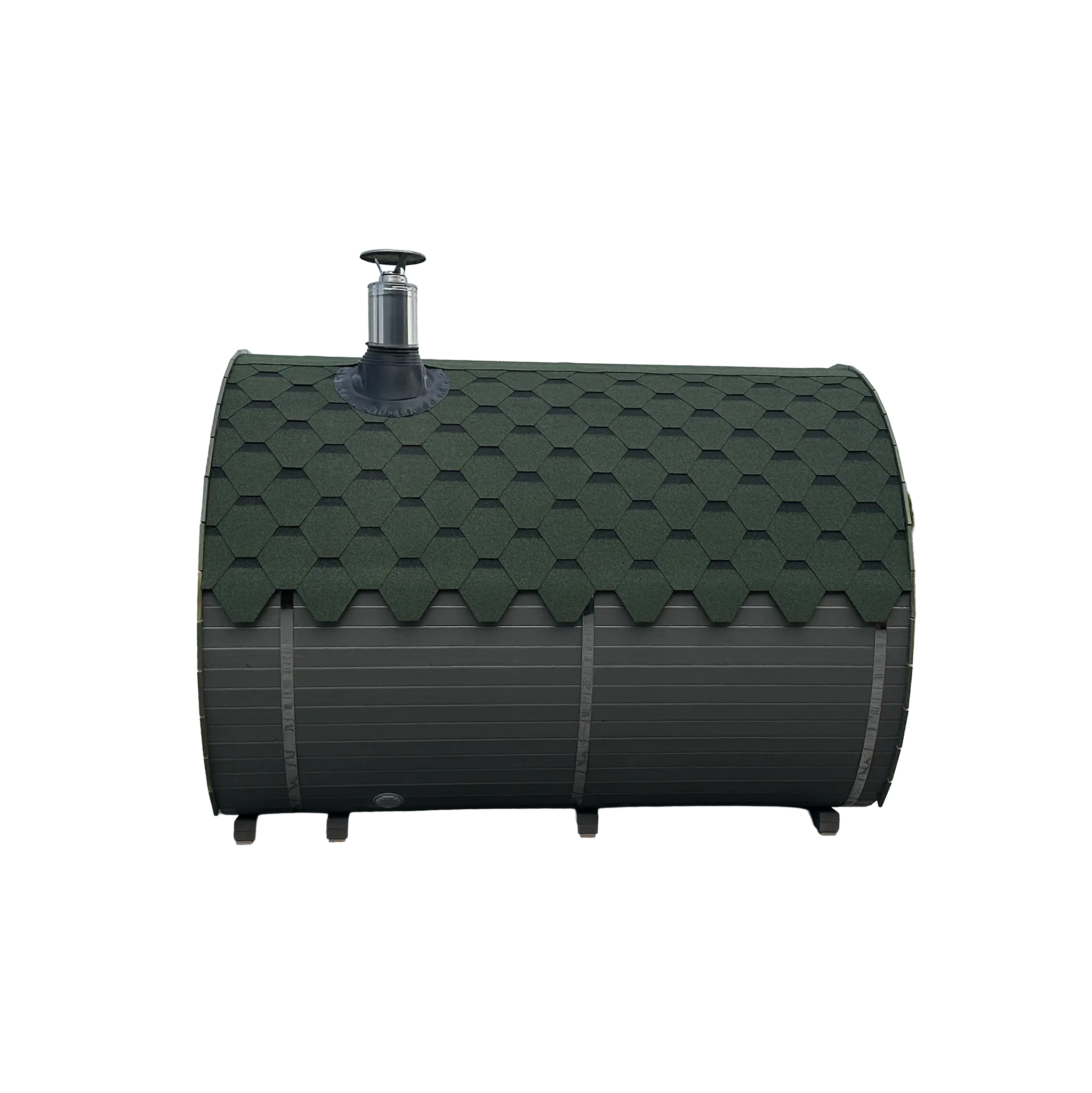 Die 3/4 Fass Gartensauna ist eine moderne Interpretation der klassischen Fasssauna. Durch ihre halbrunde Bauform entsteht ein offenes Raumgefühl, das die Vorteile eines traditionellen Fasses mit einer zeitgemäßen Optik verbindet. Sie eignet sich ideal für alle, die ein authentisches Saunaerlebnis im Garten suchen, ohne auf eine klare und reduzierte Gestaltung zu verzichten.