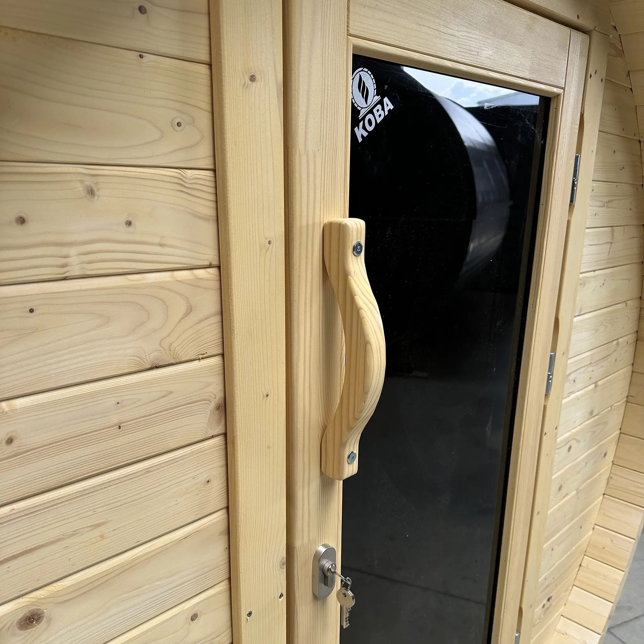 Durch ihre kompakten Abmessungen lässt sich die Mini Fasssauna flexibel in nahezu jede Gartenumgebung integrieren und ist ideal für alle, die eine hochwertige Gartensauna mit klassischem Charakter und minimalem Platzbedarf suchen.