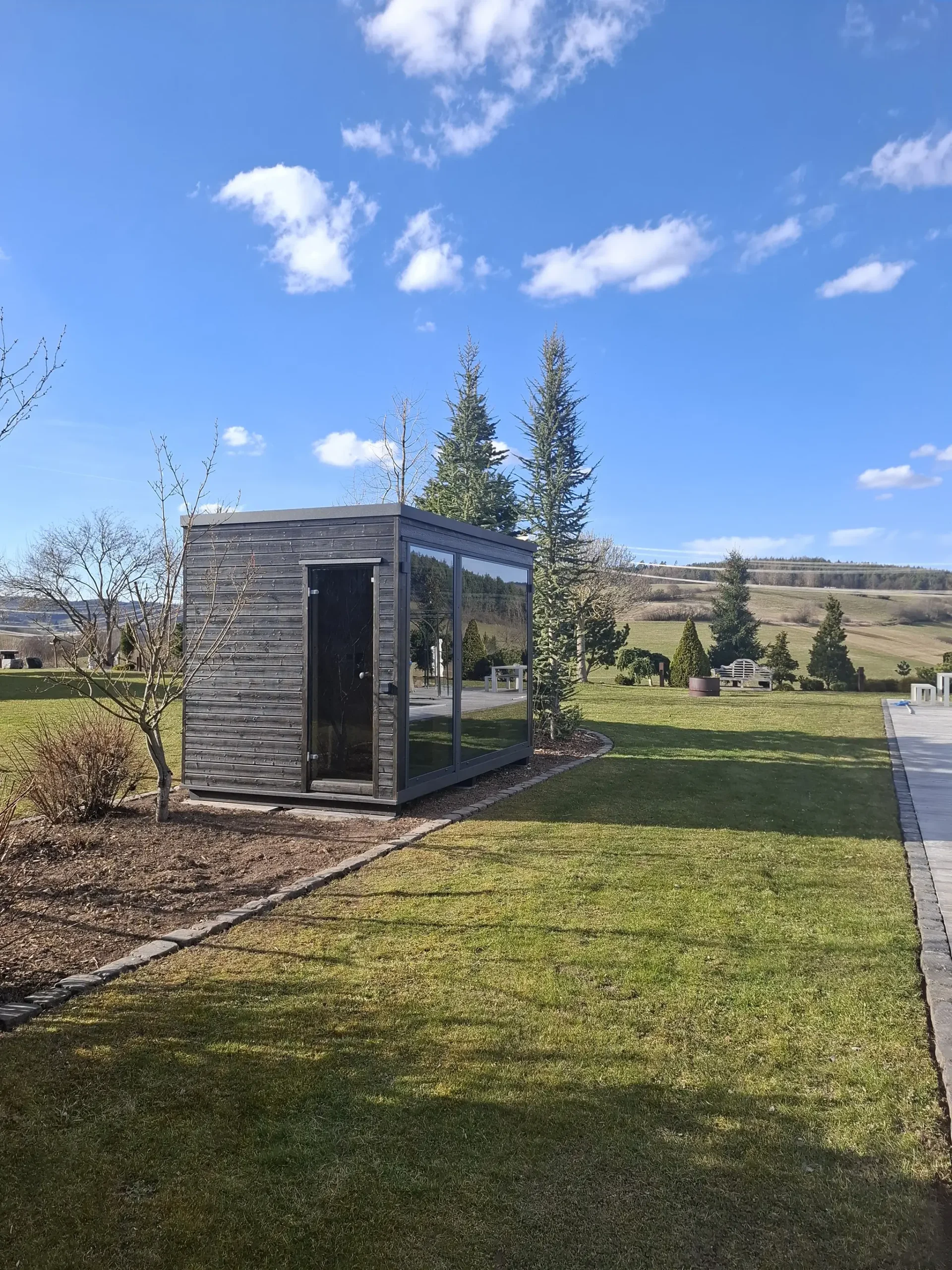 Dank ihrer klaren Architektur, der gedämmten Bauweise und der hochwertigen Ausstattung ist die Fenris Gartensauna ideal für anspruchsvolle Gärten mit modernem Charakter.