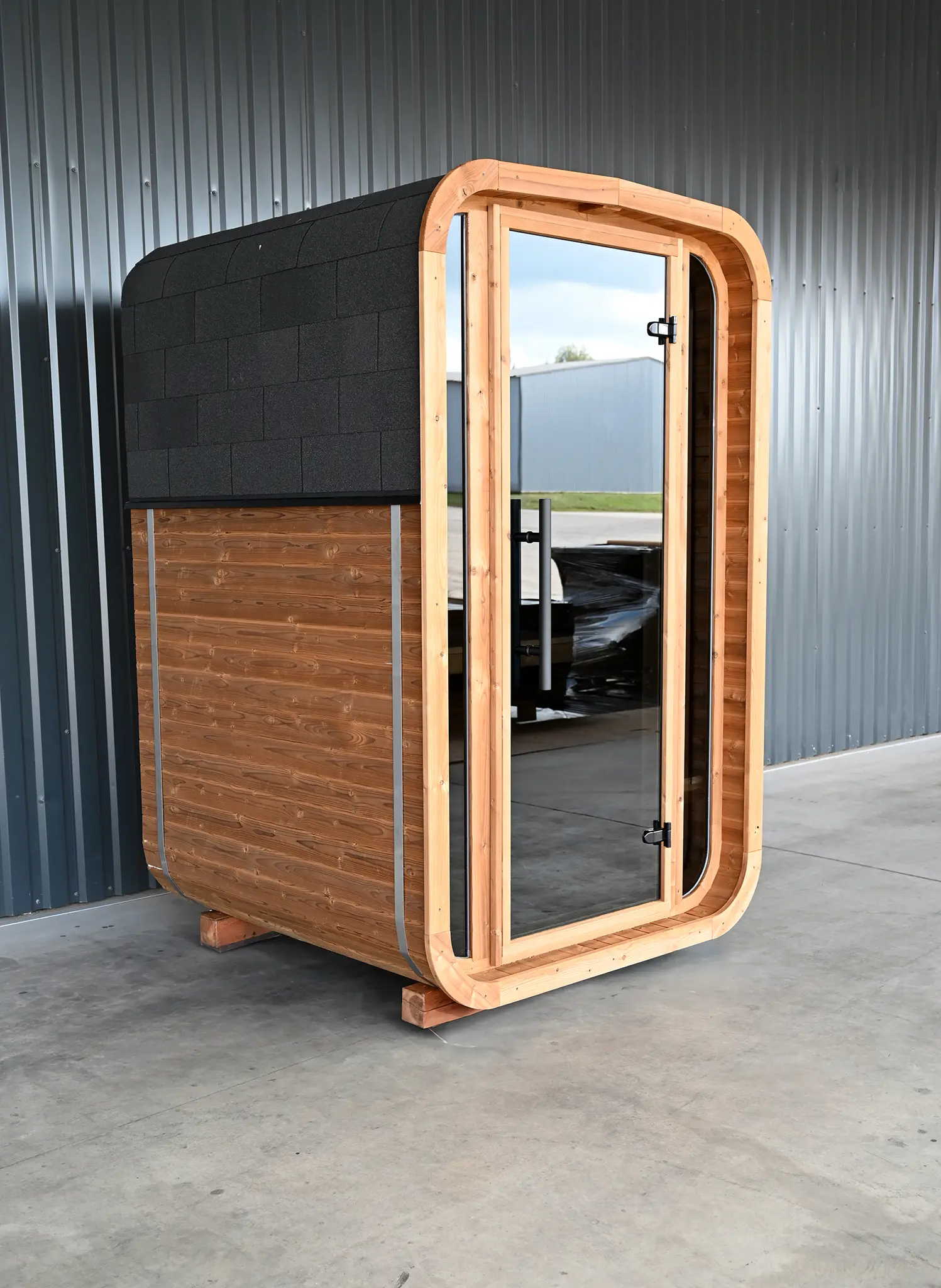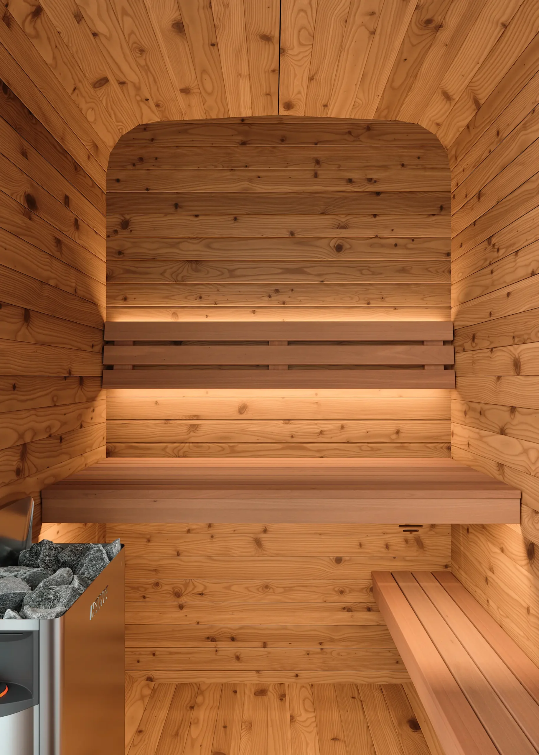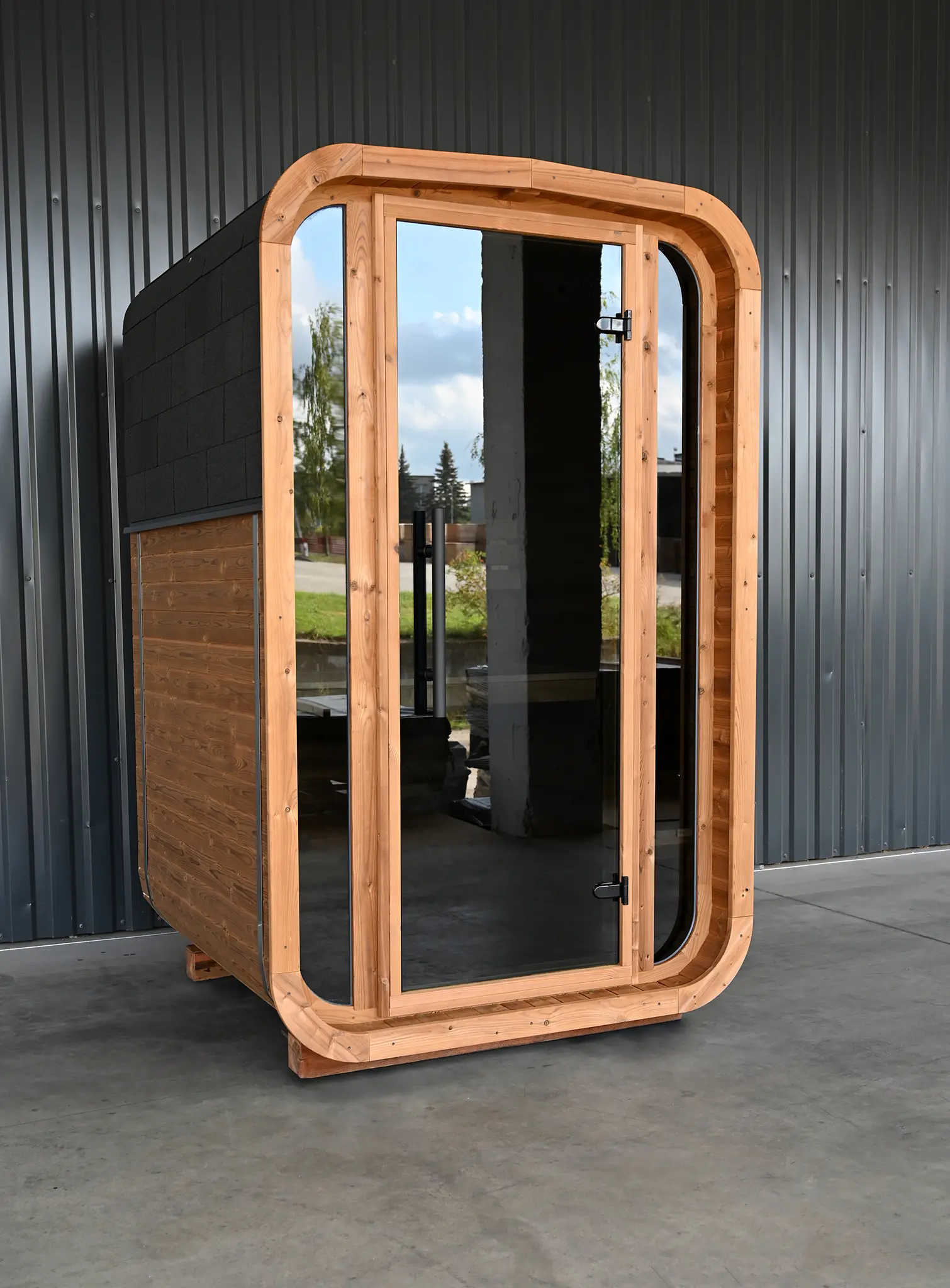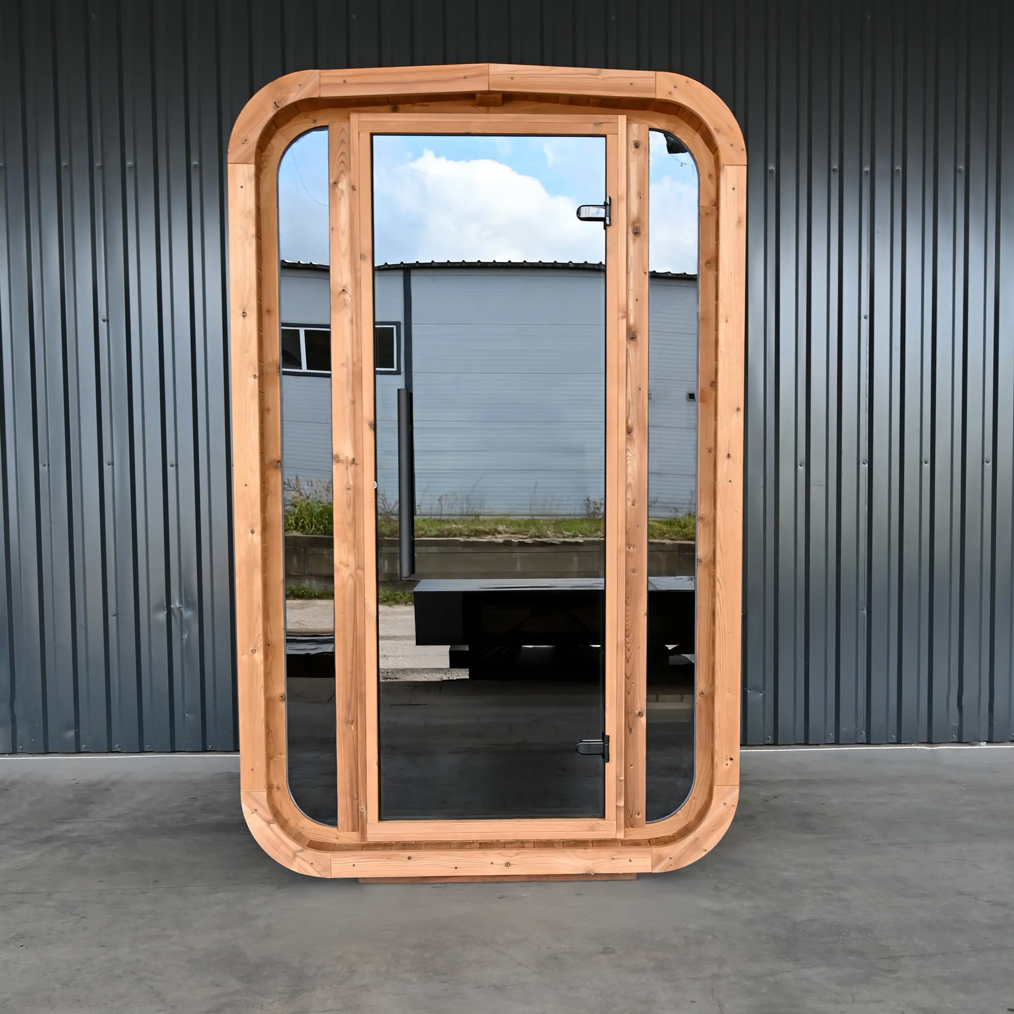 Trotz ihrer kompakten Abmessungen entsteht ein vollwertiger Saunaraum mit angenehmem Raumgefühl. Die reduzierte Grundfläche macht dieses Modell ideal für kleine Gärten, urbane Außenbereiche oder Projekte mit begrenztem Platzangebot.