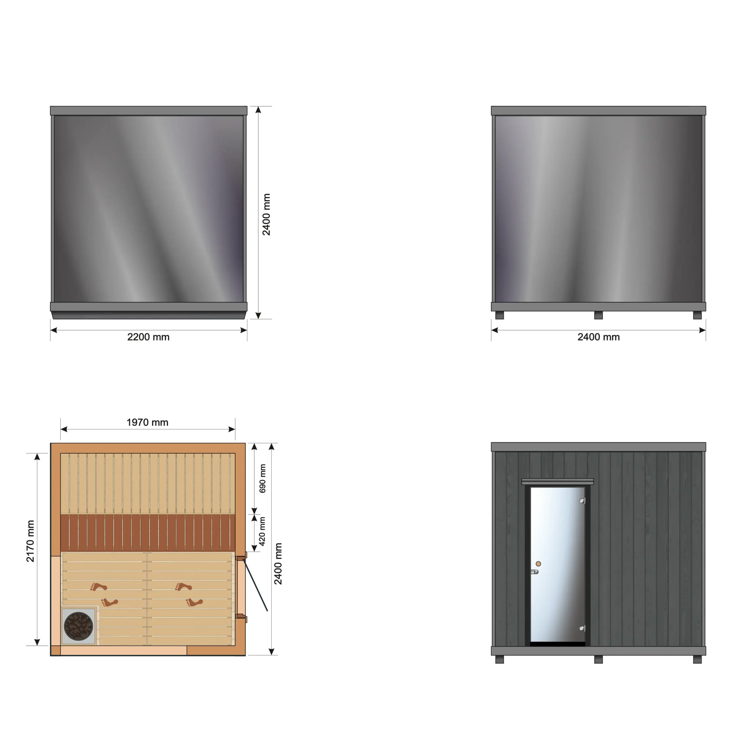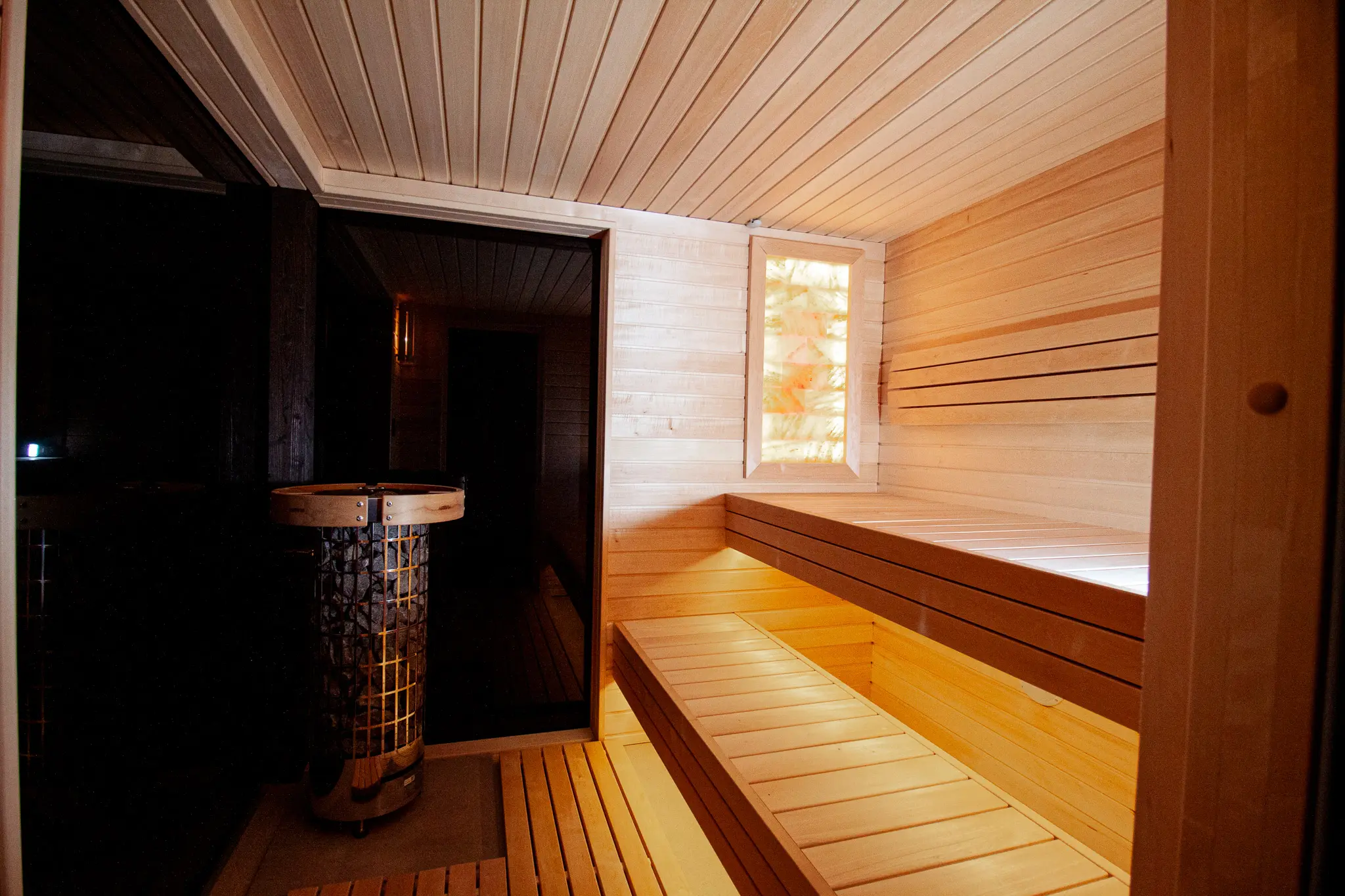 Mit einer Saunaraumlänge von 2170 mm bietet die Varis ein großzügiges Raumgefühl auf kompakter Grundfläche. Die geradlinige Bauweise sorgt für eine effiziente Raumnutzung und eine moderne, ruhige Optik.