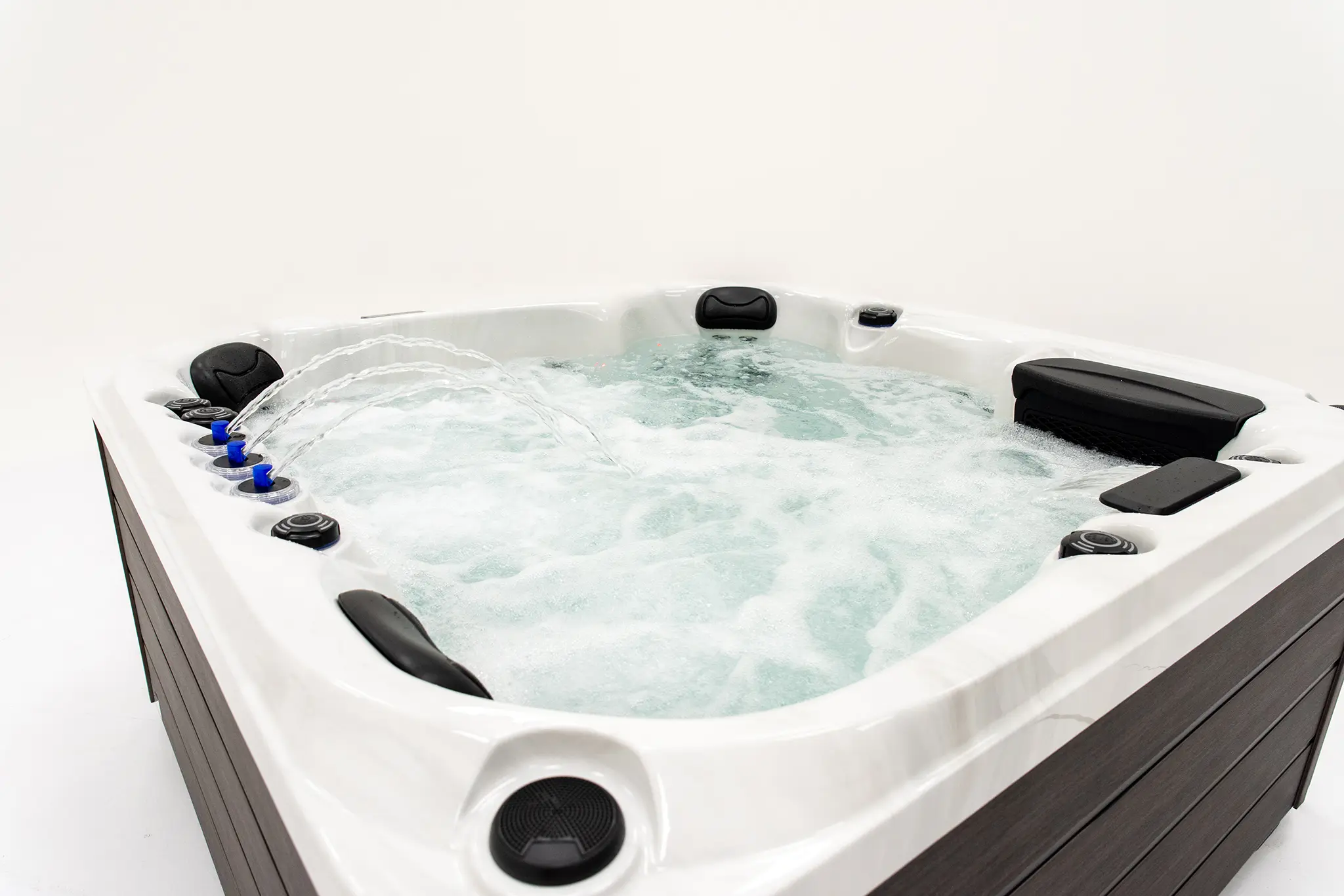 Der Maximus Whirlpool aus der Premium Range ist eines der großzügigsten Modelle der Serie. Mit 99 Massagedüsen, kombinierter Pumpenleistung und einer weitläufigen Bauform bietet er intensive Hydromassage für bis zu sechs Personen.