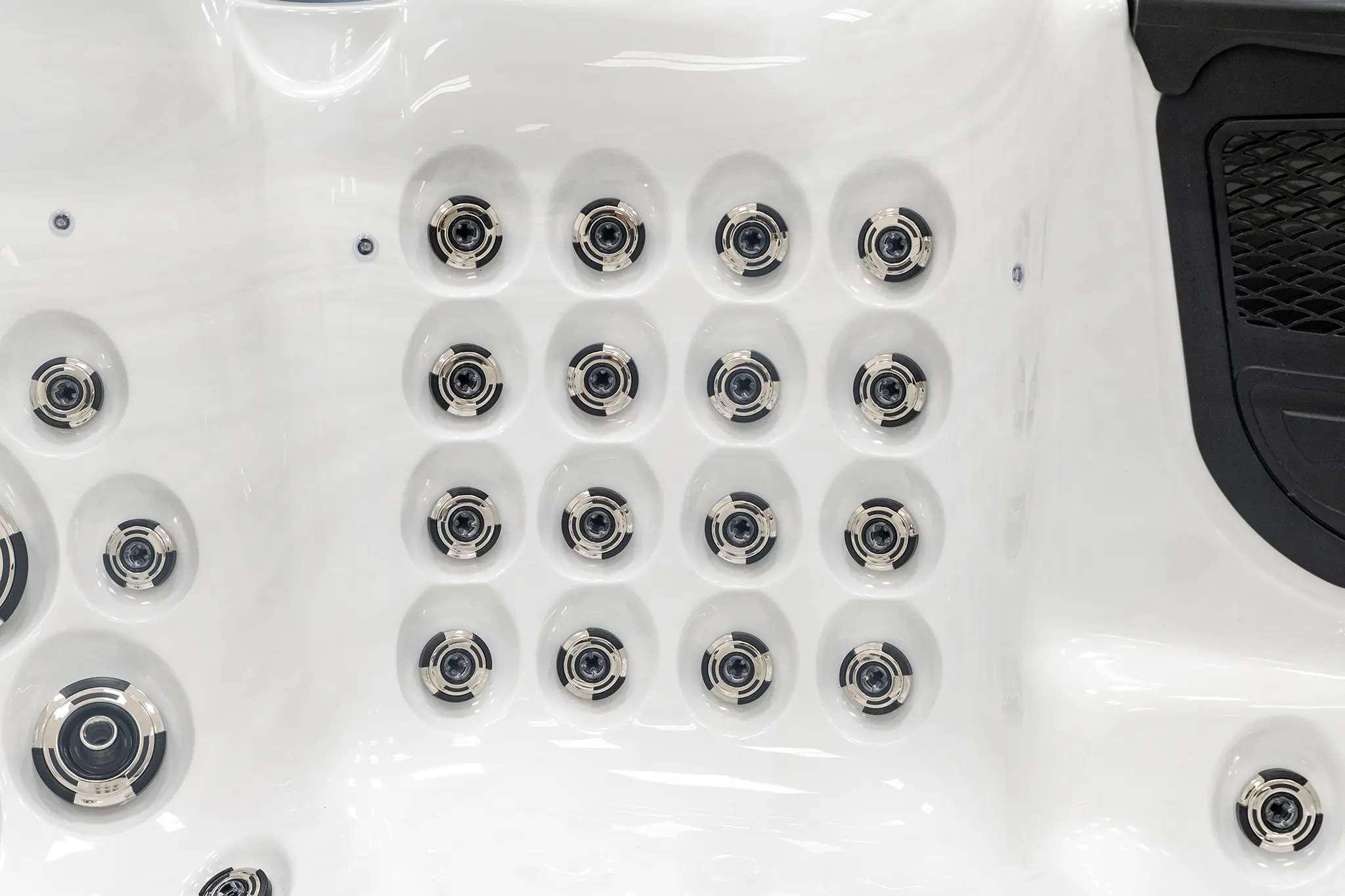 Der Portofino Whirlpool aus der Luxury Range kombiniert großzügige Abmessungen mit kraftvoller 3 × 3 HP Pumpentechnik und 66 Massagedüsen. Mit vier Sitzplätzen und einer komfortablen Liege bietet er Premium-Entspannung auf höchstem Niveau.