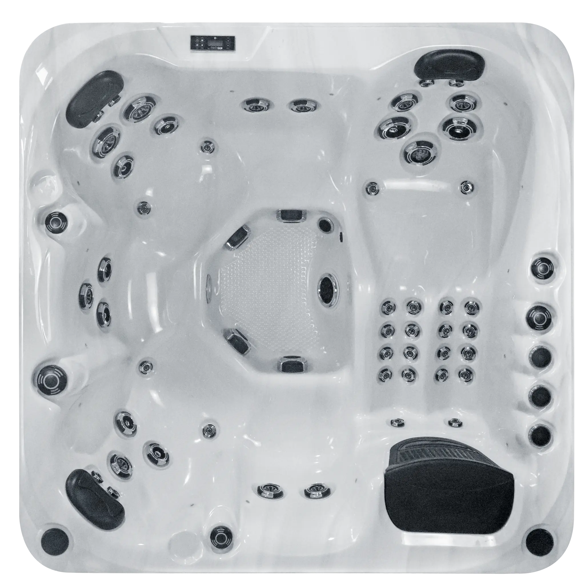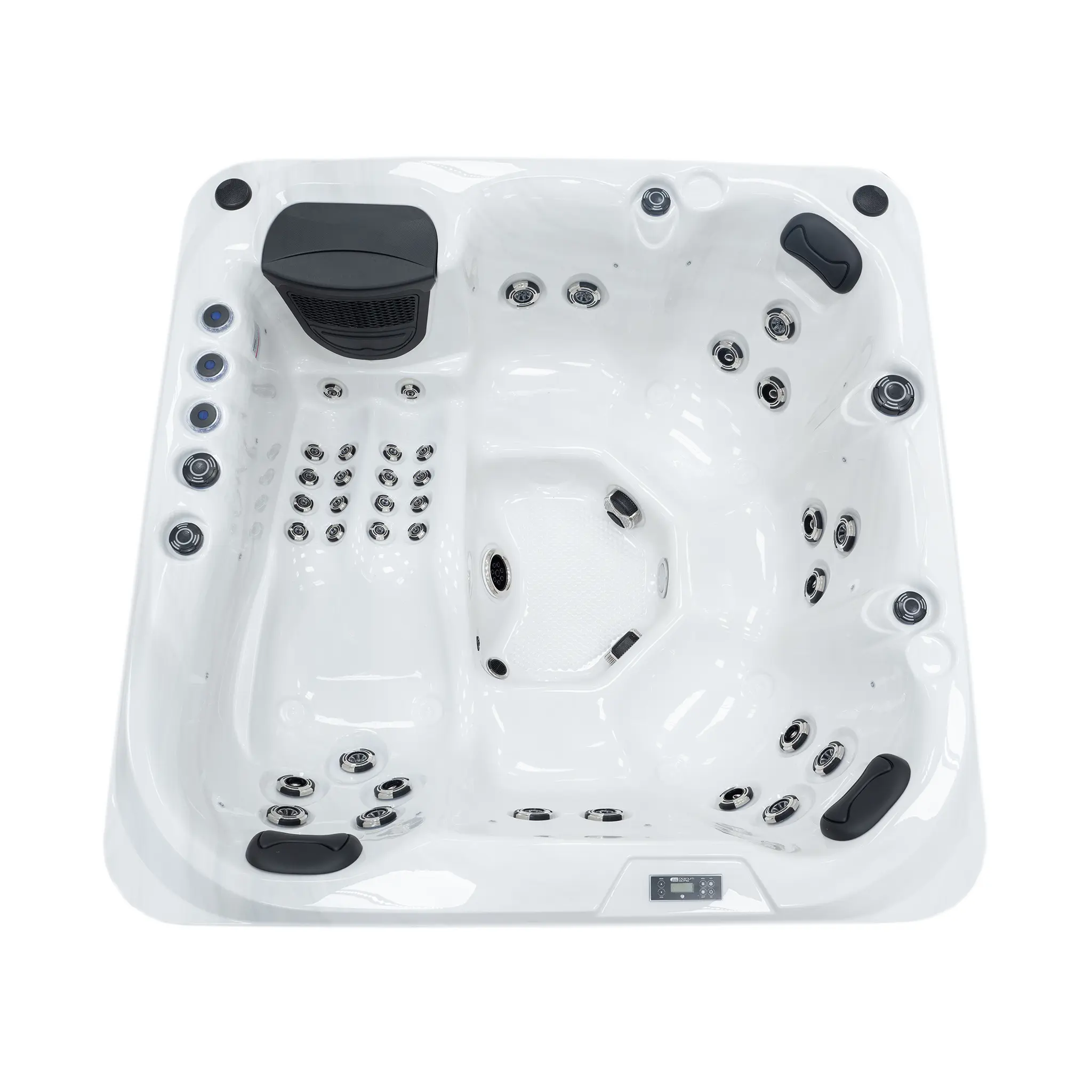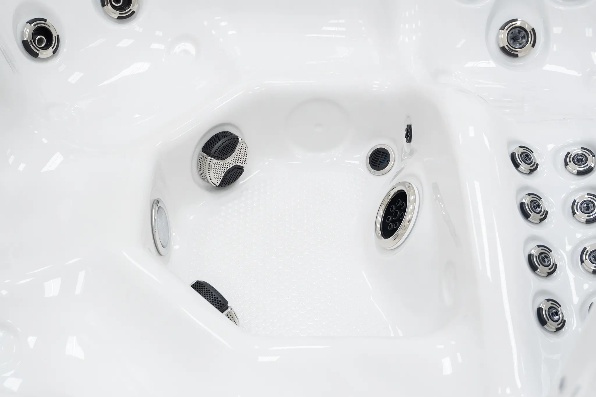 Für die Massageleistung sorgen 49 präzise angeordnete Düsen, unterstützt durch zwei leistungsstarke 2-HP-Massagepumpen sowie eine separate Umwälzpumpe. Die integrierte 3-kW-Heizung gewährleistet eine schnelle und konstante Temperaturregelung. Der Betrieb ist flexibel mit 230 V oder 400 V möglich und bietet damit vielseitige Installationsoptionen.