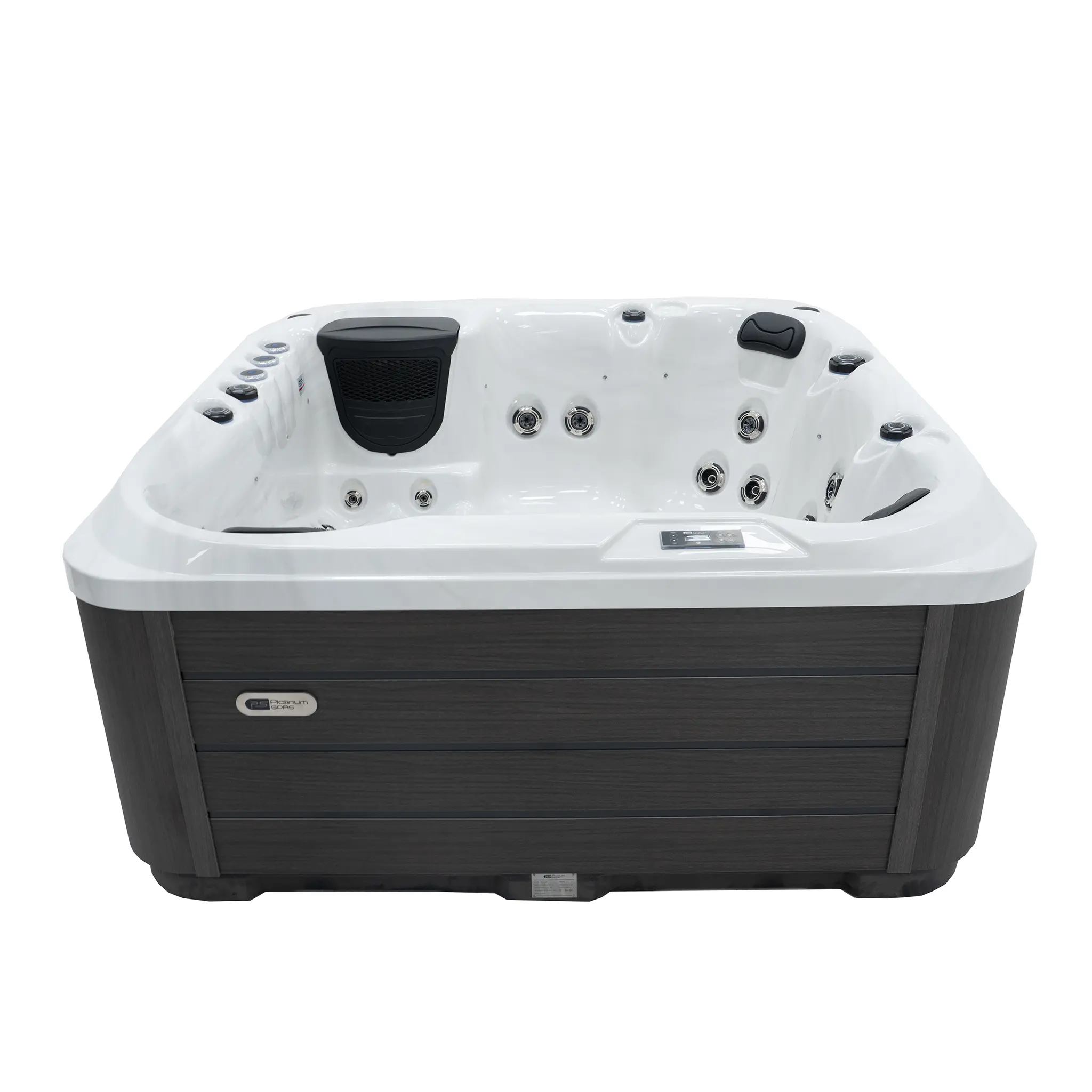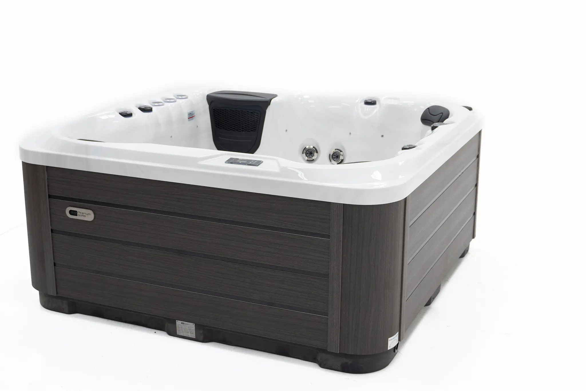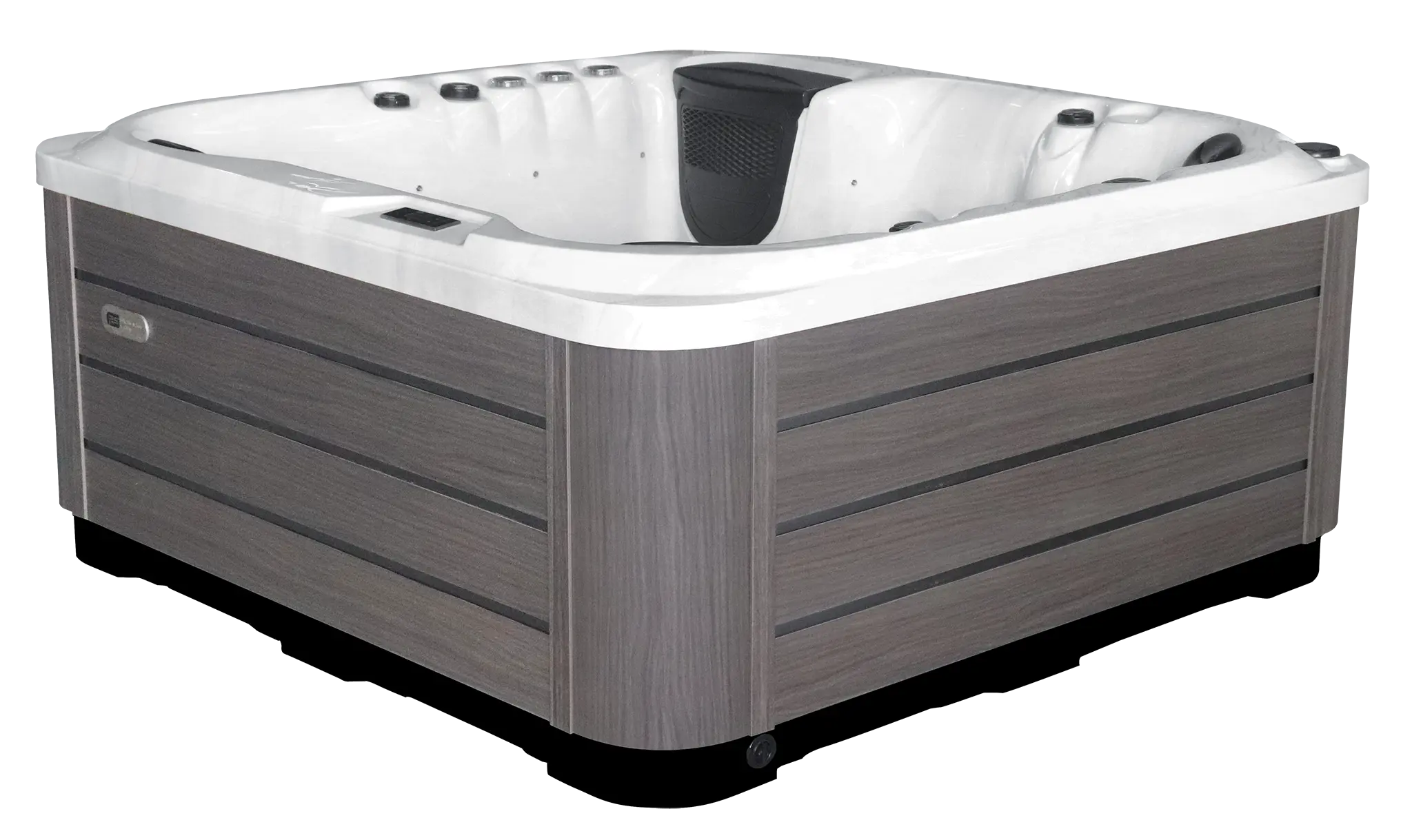 Mit seinen Maßen von 200 × 200 × 90 cm fügt sich der quadratische Whirlpool harmonisch in Terrassen- oder Gartenbereiche ein. Das langlebige Acrylbecken ist pflegeleicht und in mehreren stilvollen Wannenfarben erhältlich. Die graue WPC-Außenverkleidung sorgt für eine moderne Optik und hohe Widerstandsfähigkeit gegenüber Witterungseinflüssen.