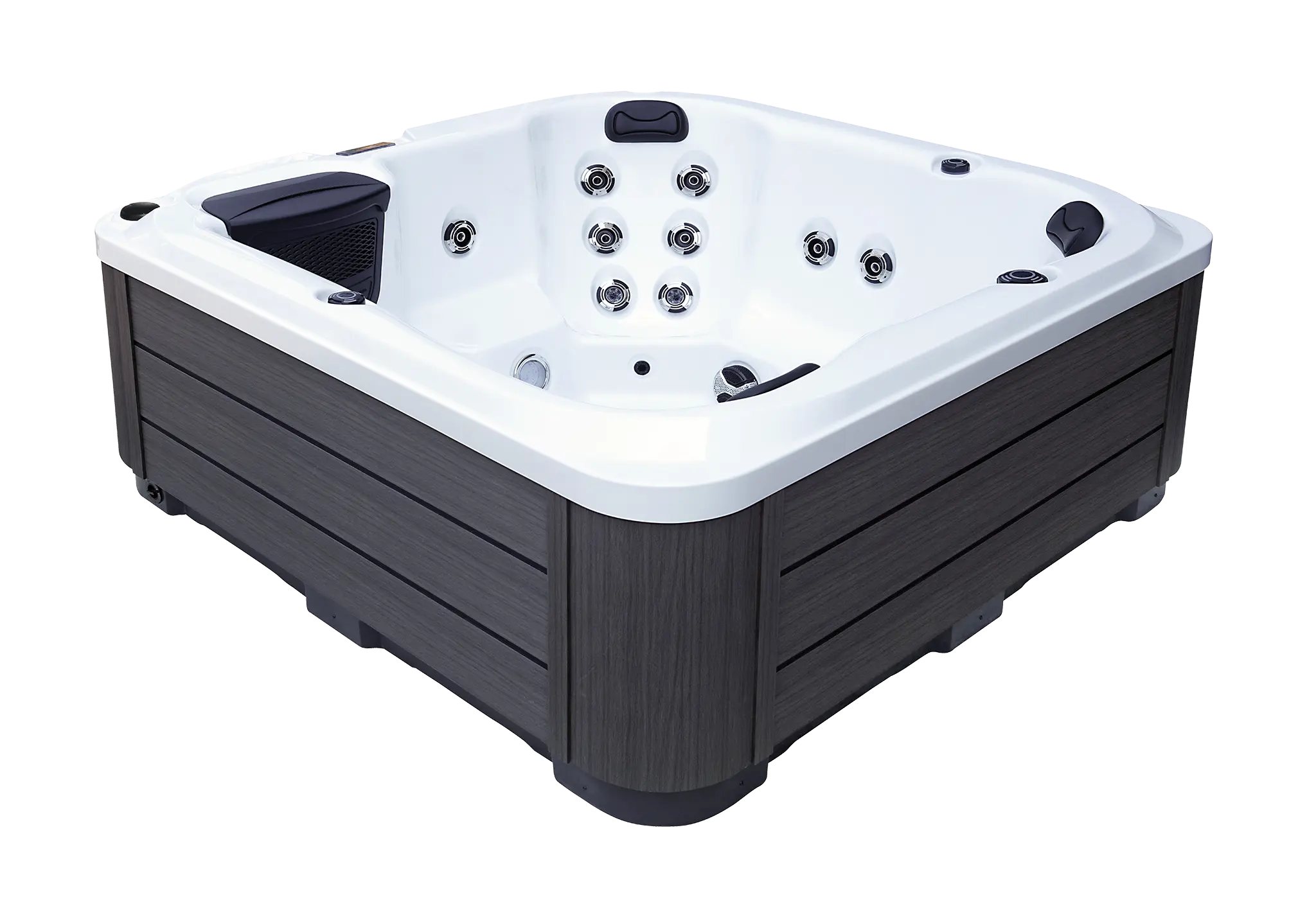Die quadratische Bauform mit 200 × 200 cm sorgt für eine optimale Raumausnutzung und ein harmonisches Gesamtbild im Garten oder auf der Terrasse. Das robuste Acrylbecken ist langlebig, pflegeleicht und in der Wannenfarbe „Reines Weiß“ erhältlich. Die Außenverkleidung aus WPC in Grau unterstreicht die moderne Optik und ist gleichzeitig wetterbeständig und stabil.