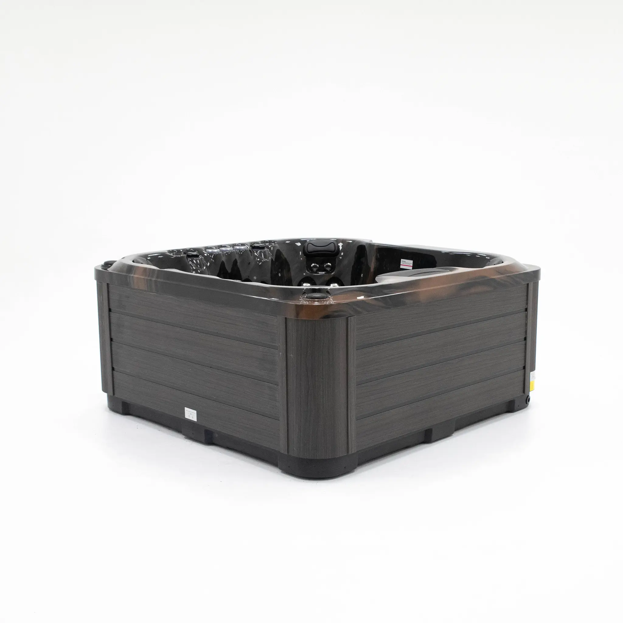 Die quadratische Bauform mit 200 × 200 cm ermöglicht eine harmonische Integration in unterschiedliche Außenbereiche. Das hochwertige Acrylbecken ist langlebig und pflegeleicht. In Kombination mit der grauen WPC-Außenverkleidung entsteht eine moderne und wetterbeständige Optik. Die Wannenfarbe ist in mehreren eleganten Varianten erhältlich.
