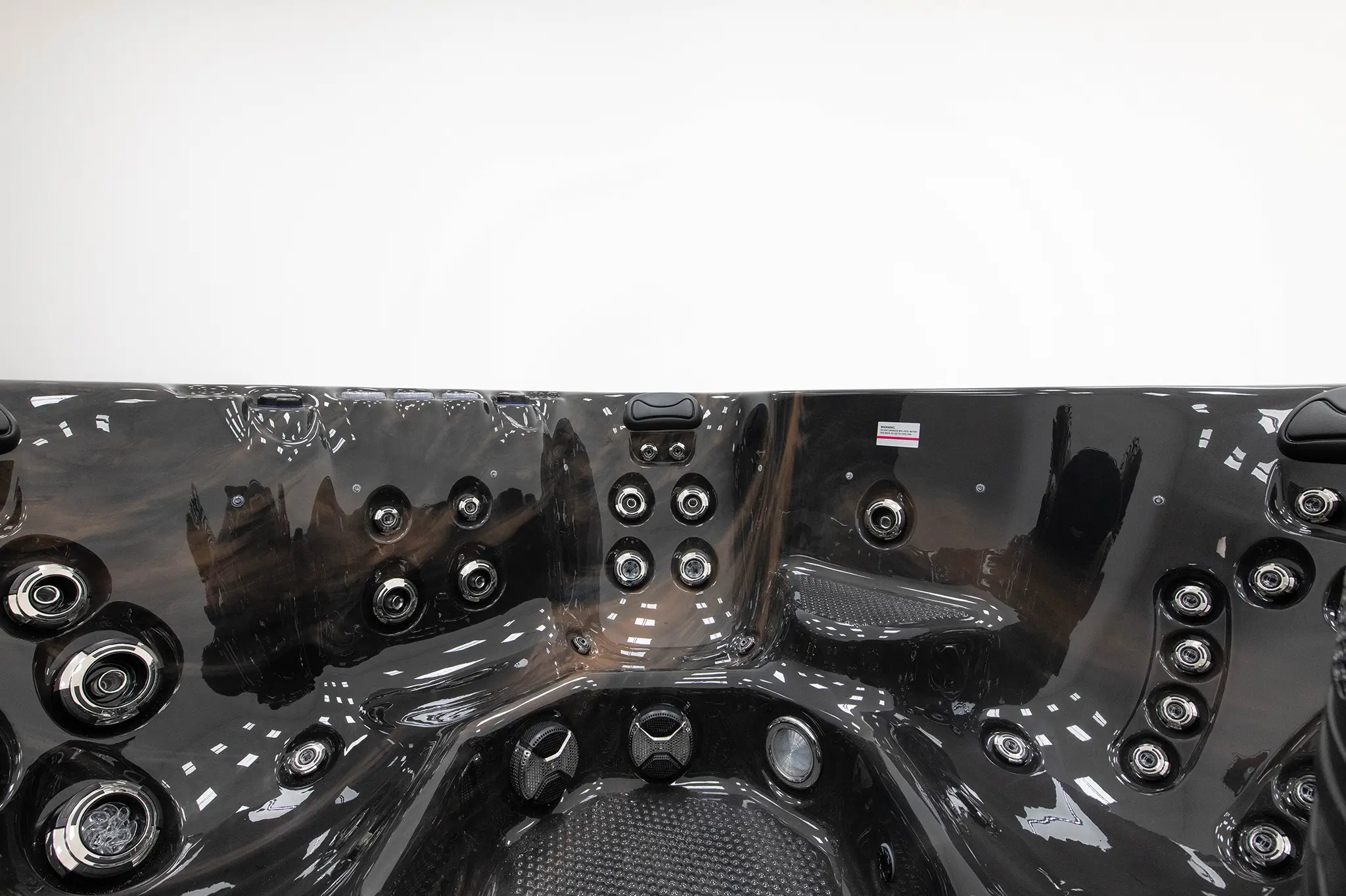 Der Tokyo Whirlpool aus der Premium Range kombiniert großzügige Abmessungen mit besonders hoher Düsenanzahl. Mit 89 Massagedüsen, drei 3-HP-Pumpen und komfortabler Sitz- und Liegeaufteilung bietet er intensive Hydromassage für bis zu sechs Personen.