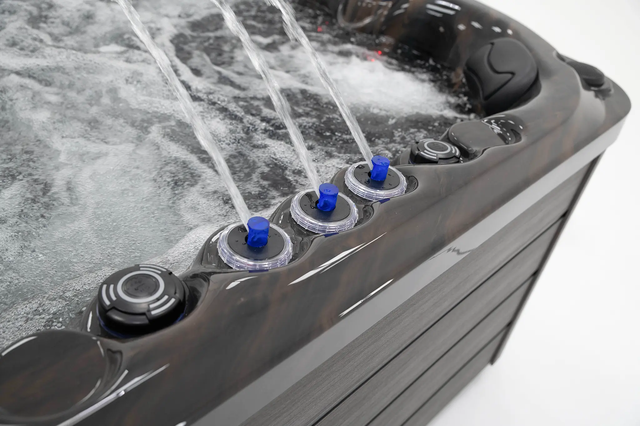 Der Maximus Whirlpool aus der Premium Range ist eines der großzügigsten Modelle der Serie. Mit 99 Massagedüsen, kombinierter Pumpenleistung und einer weitläufigen Bauform bietet er intensive Hydromassage für bis zu sechs Personen.