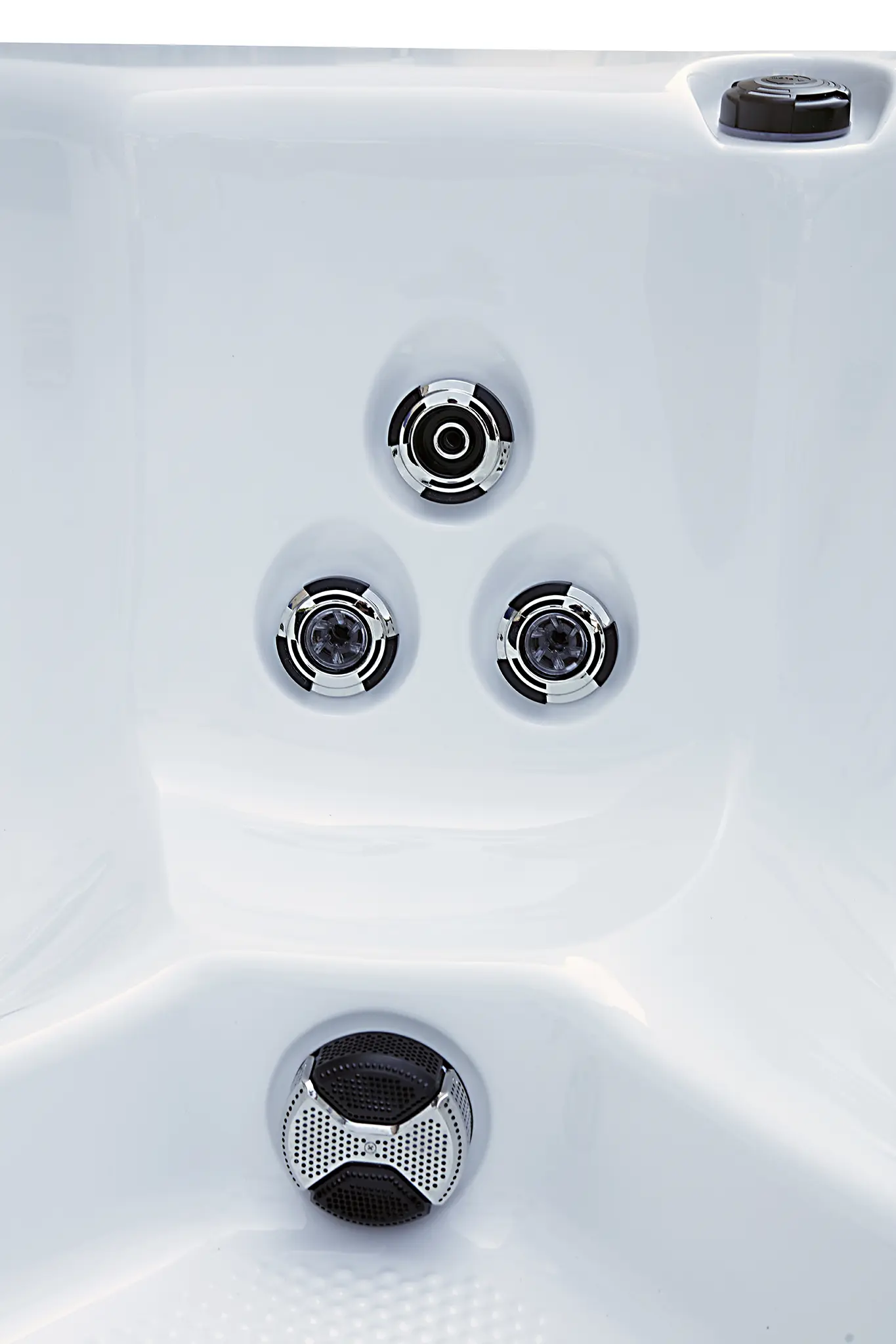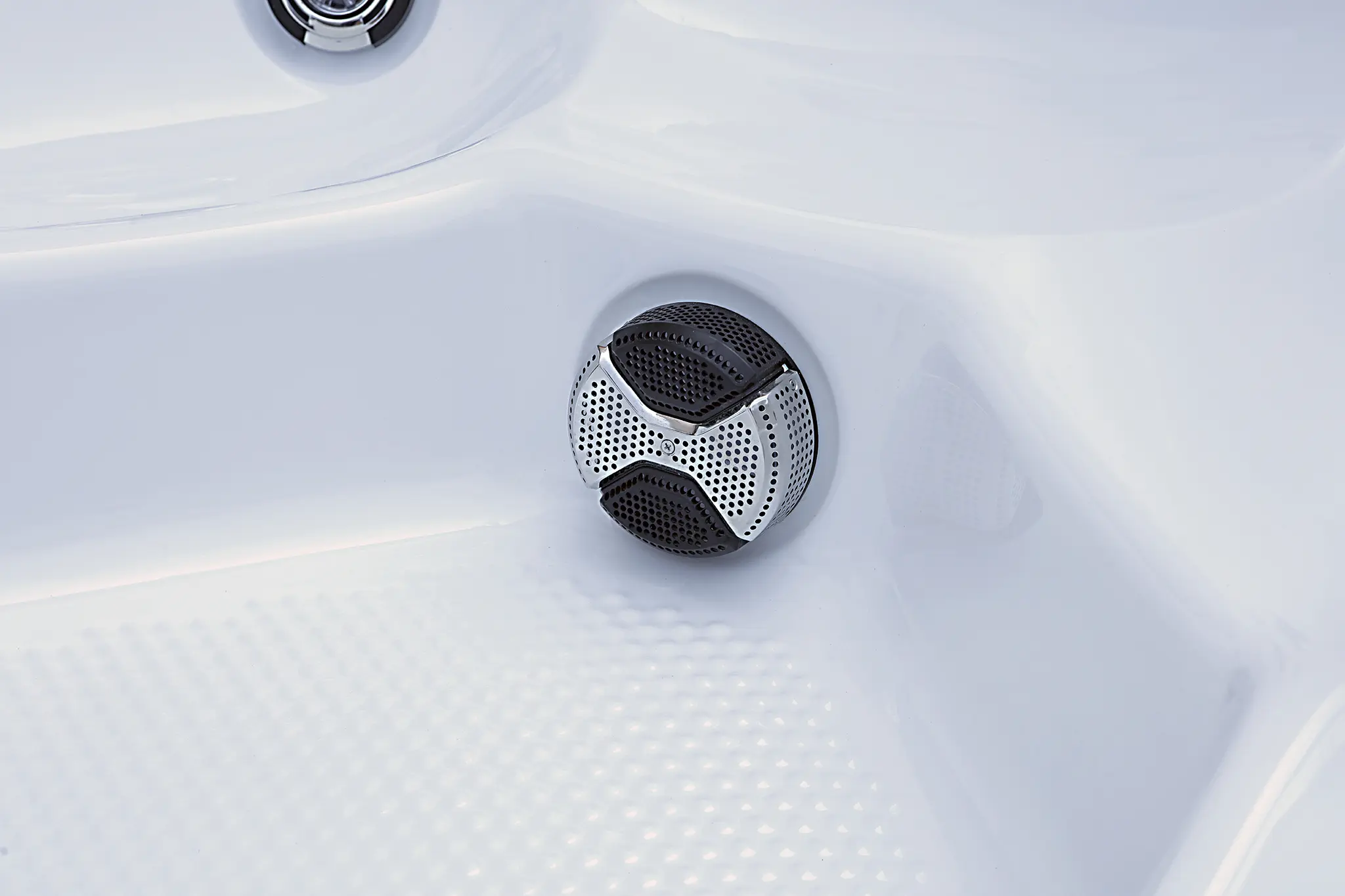 Für die Massageleistung sorgen 25 präzise angeordnete Düsen, unterstützt durch eine leistungsstarke 3 HP Massagepumpe sowie eine separate Umwälzpumpe. Die integrierte 2 kW Heizung gewährleistet eine konstante Temperatur bei einem 230 V Anschluss. Das integrierte Bluetooth-Soundsystem rundet das Wellnesserlebnis ab und schafft eine entspannte Atmosphäre.