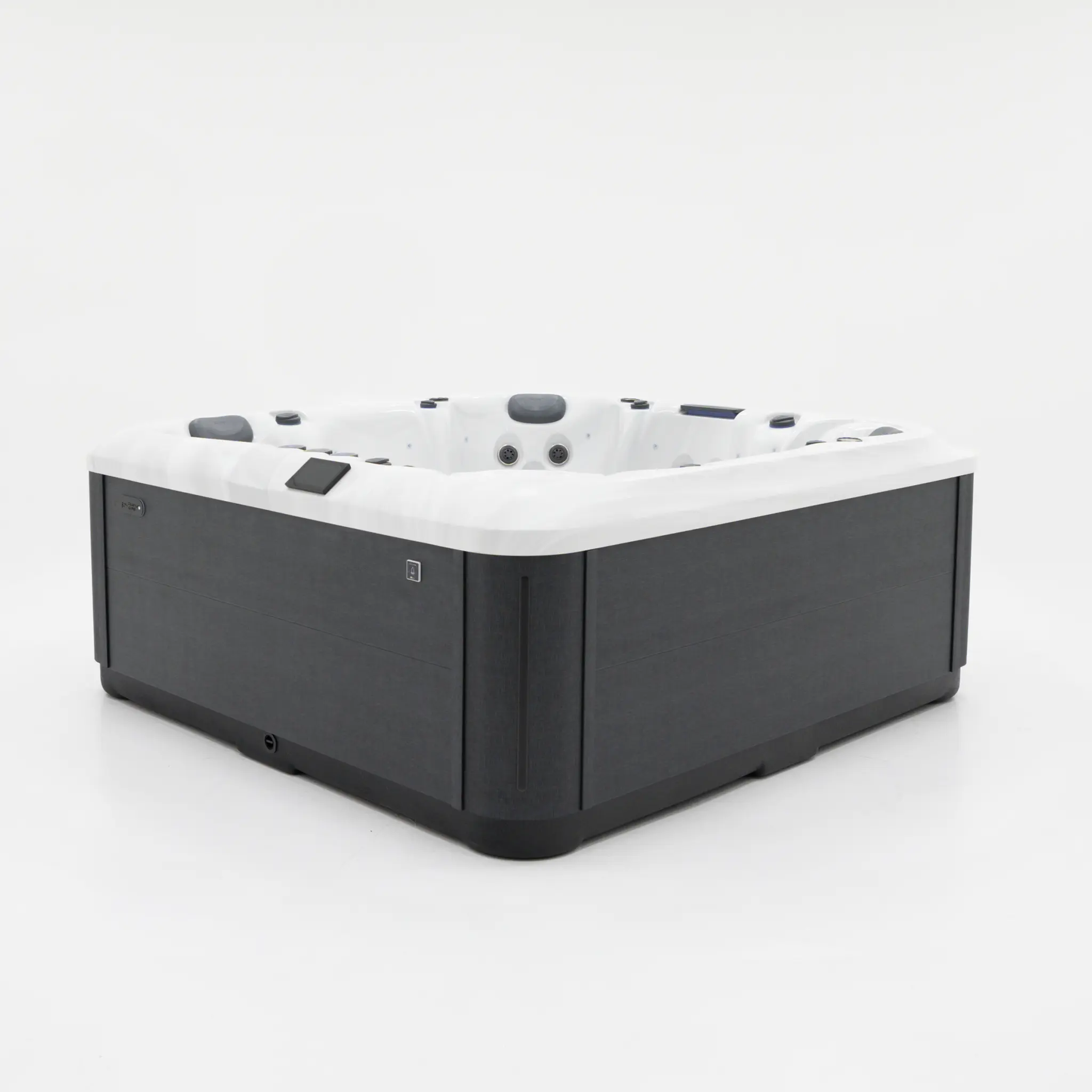 Mit seinen Maßen von 230 × 230 × 95 cm gehört der Portofino zu den großzügigsten Modellen der Serie. Das langlebige Acrylbecken ist pflegeleicht und in mehreren eleganten, matten Wannenfarben erhältlich. Die hochwertige „Shadow Wave“ Außenverkleidung aus WPC verleiht dem Whirlpool eine moderne, markante Optik und sorgt für hohe Witterungsbeständigkeit.