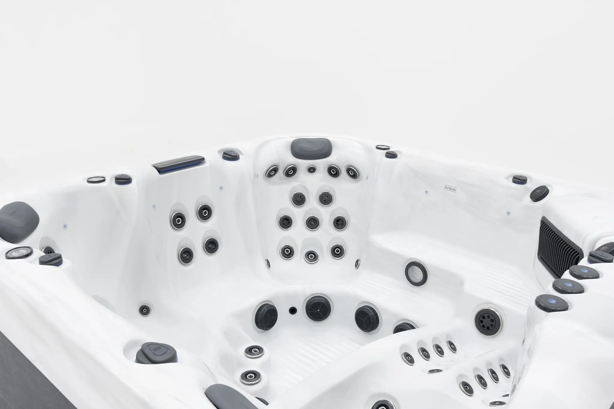 Der Maximus Whirlpool aus der Premium Range ist eines der großzügigsten Modelle der Serie. Mit 99 Massagedüsen, kombinierter Pumpenleistung und einer weitläufigen Bauform bietet er intensive Hydromassage für bis zu sechs Personen.