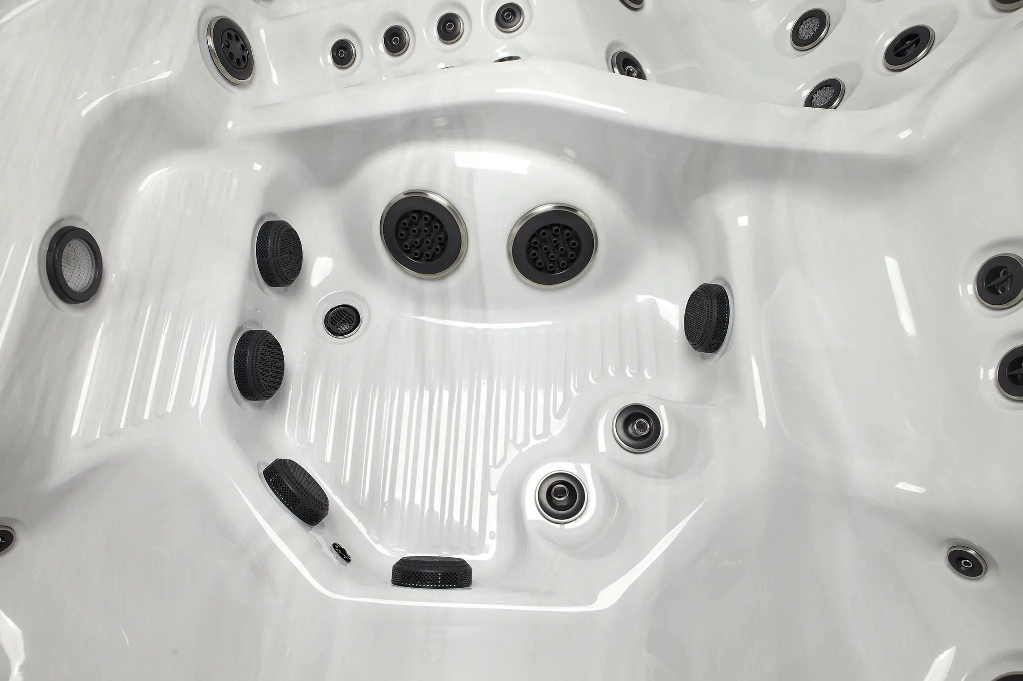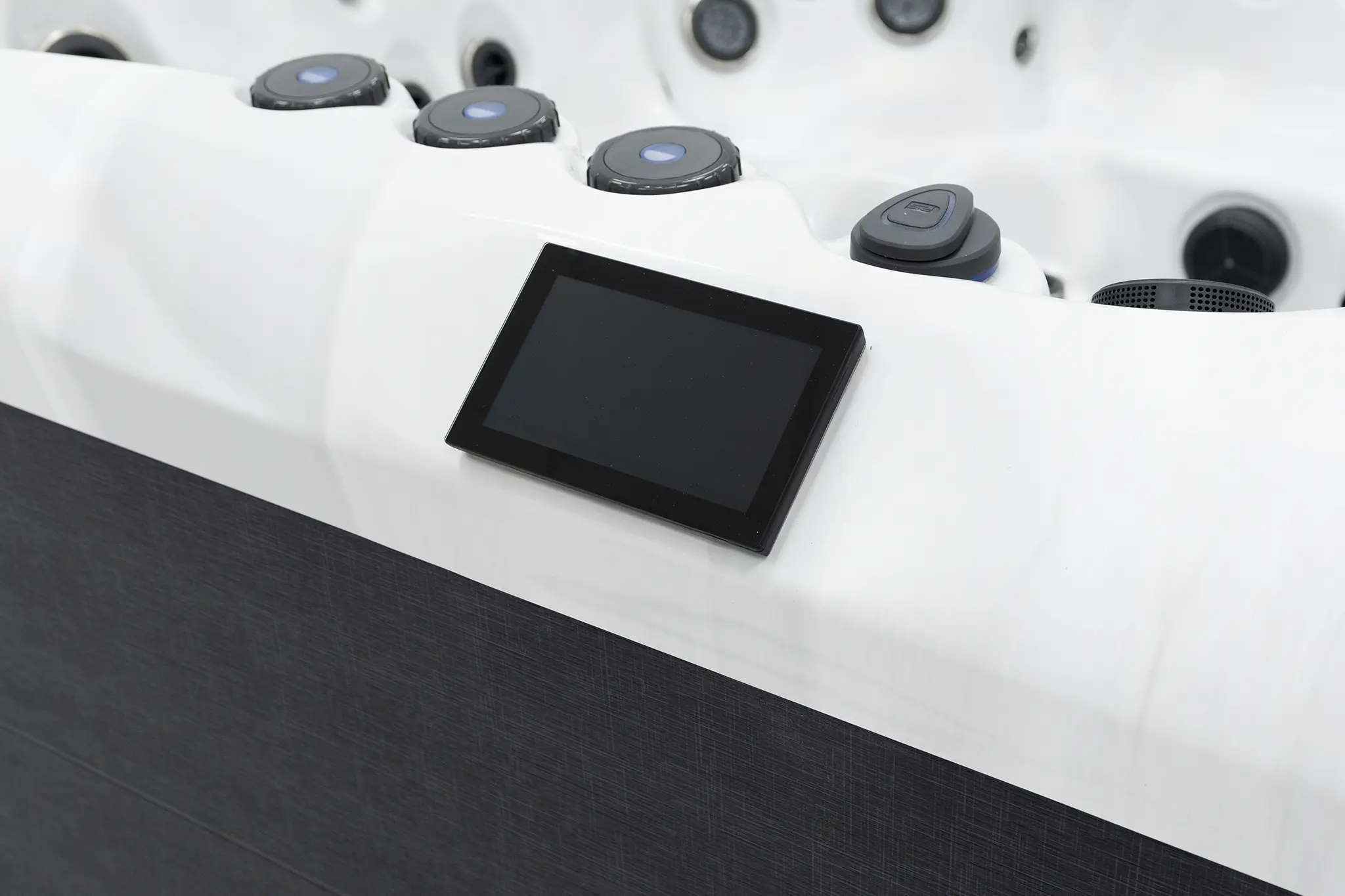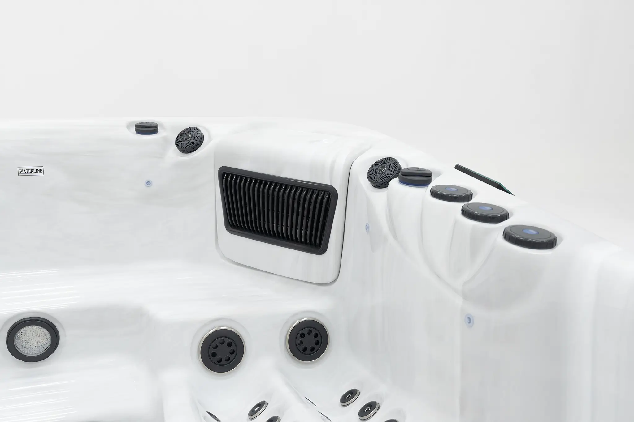 Für die intensive Hydromassage sorgen 66 präzise angeordnete Düsen, unterstützt durch drei leistungsstarke 3-HP-Massagepumpen sowie eine separate Umwälzpumpe. Diese Kombination ermöglicht eine besonders kraftvolle und gleichmäßige Wasserbewegung. Die integrierte 3-kW-Heizung gewährleistet eine konstante Temperaturregelung. Der Anschluss kann flexibel über 230 V oder 400 V erfolgen.