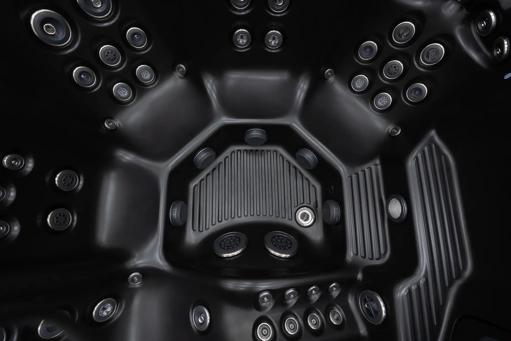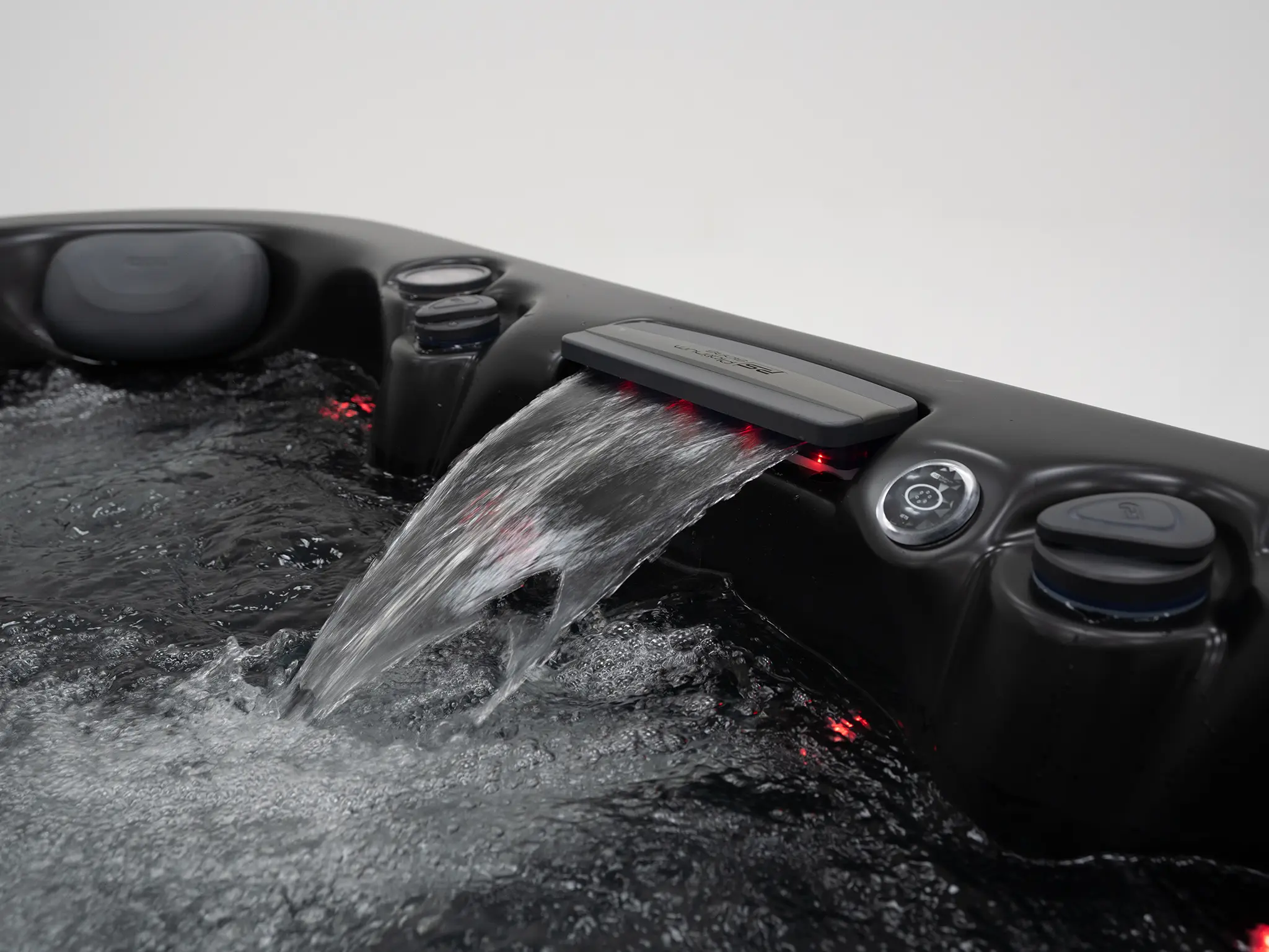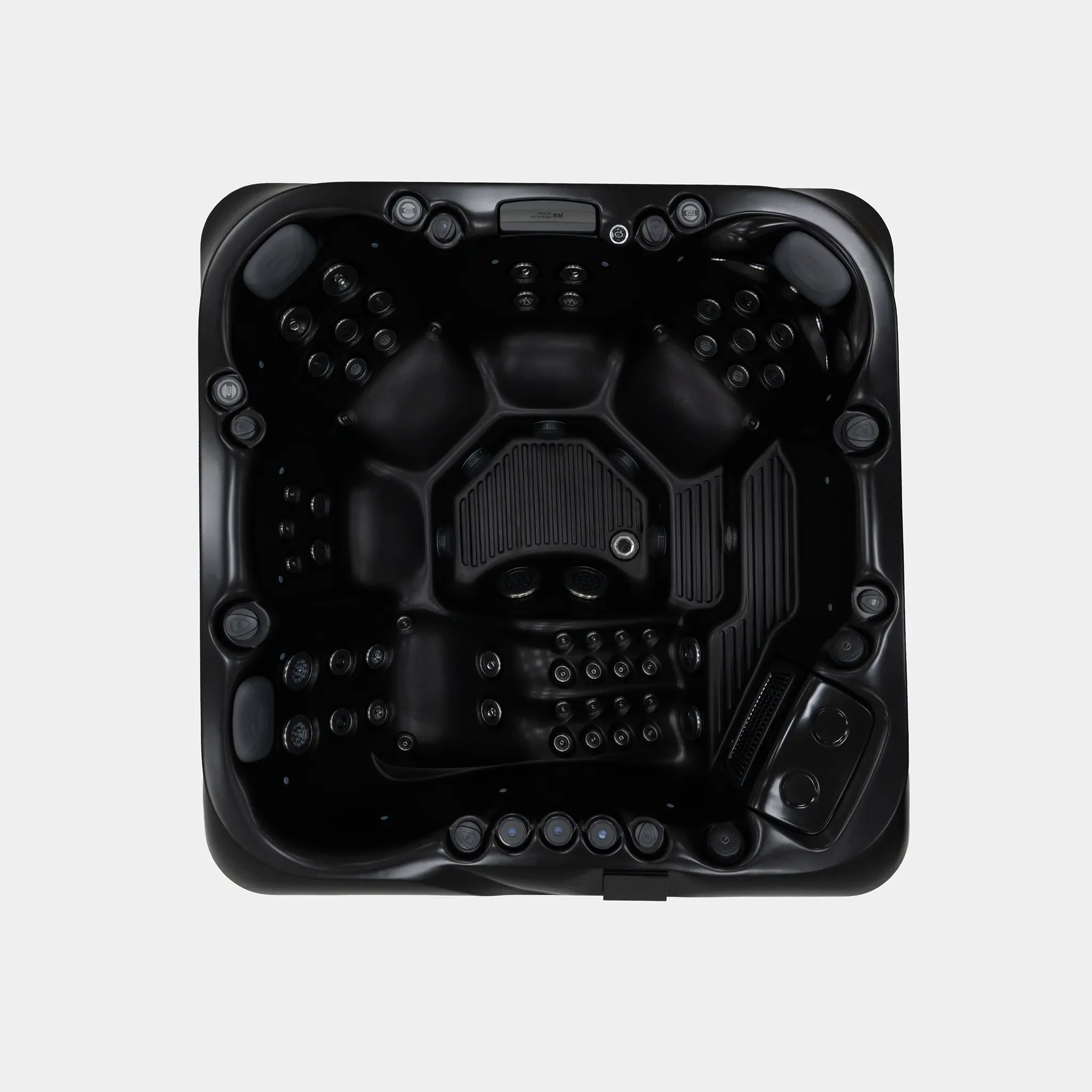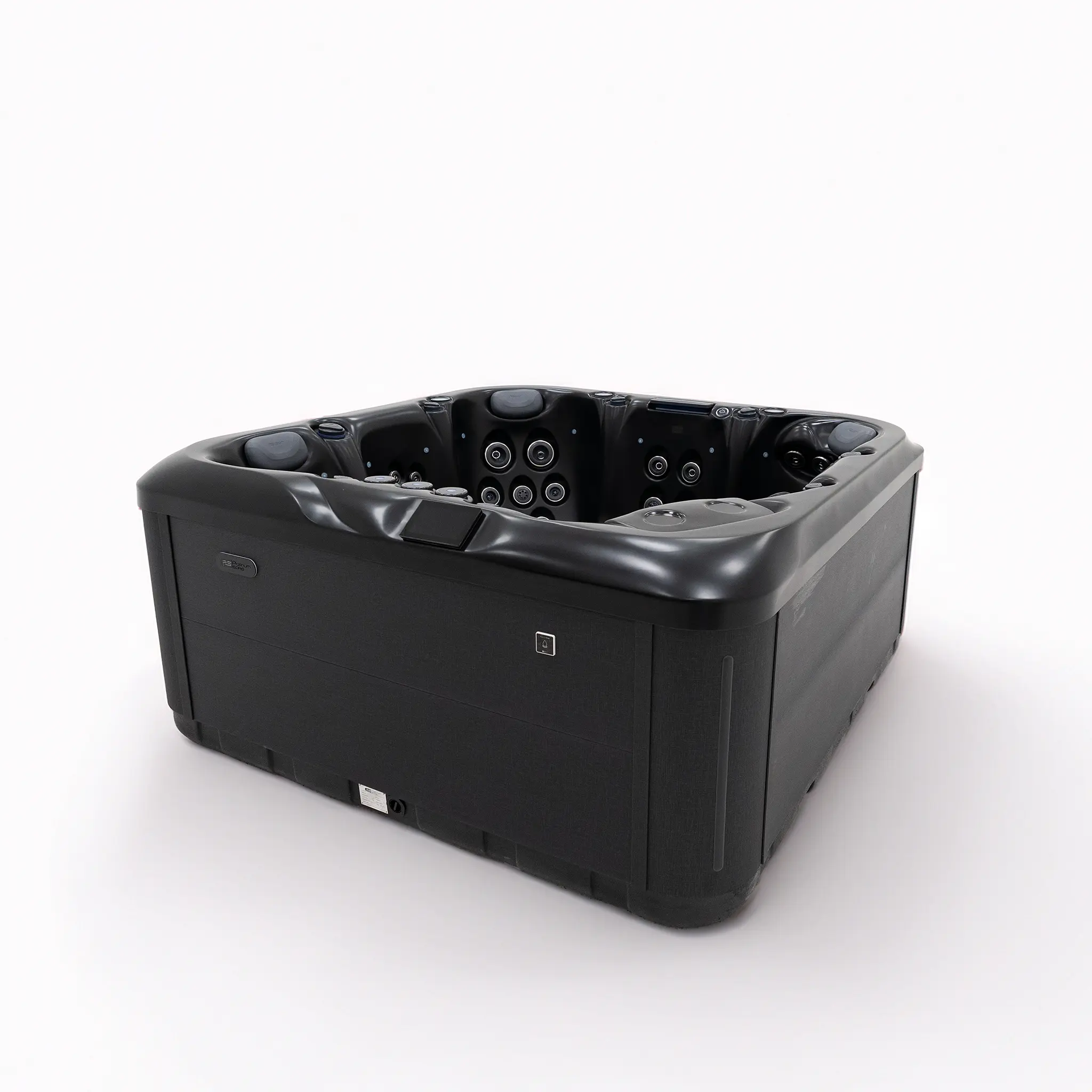 Für die Hydromassage sorgen 62 präzise angeordnete Düsen, unterstützt durch zwei leistungsstarke 3-HP-Massagepumpen sowie eine separate Umwälzpumpe. Die integrierte 3-kW-Heizung gewährleistet eine schnelle und konstante Temperaturregelung. Der Anschluss kann flexibel über 230 V oder 400 V erfolgen.
