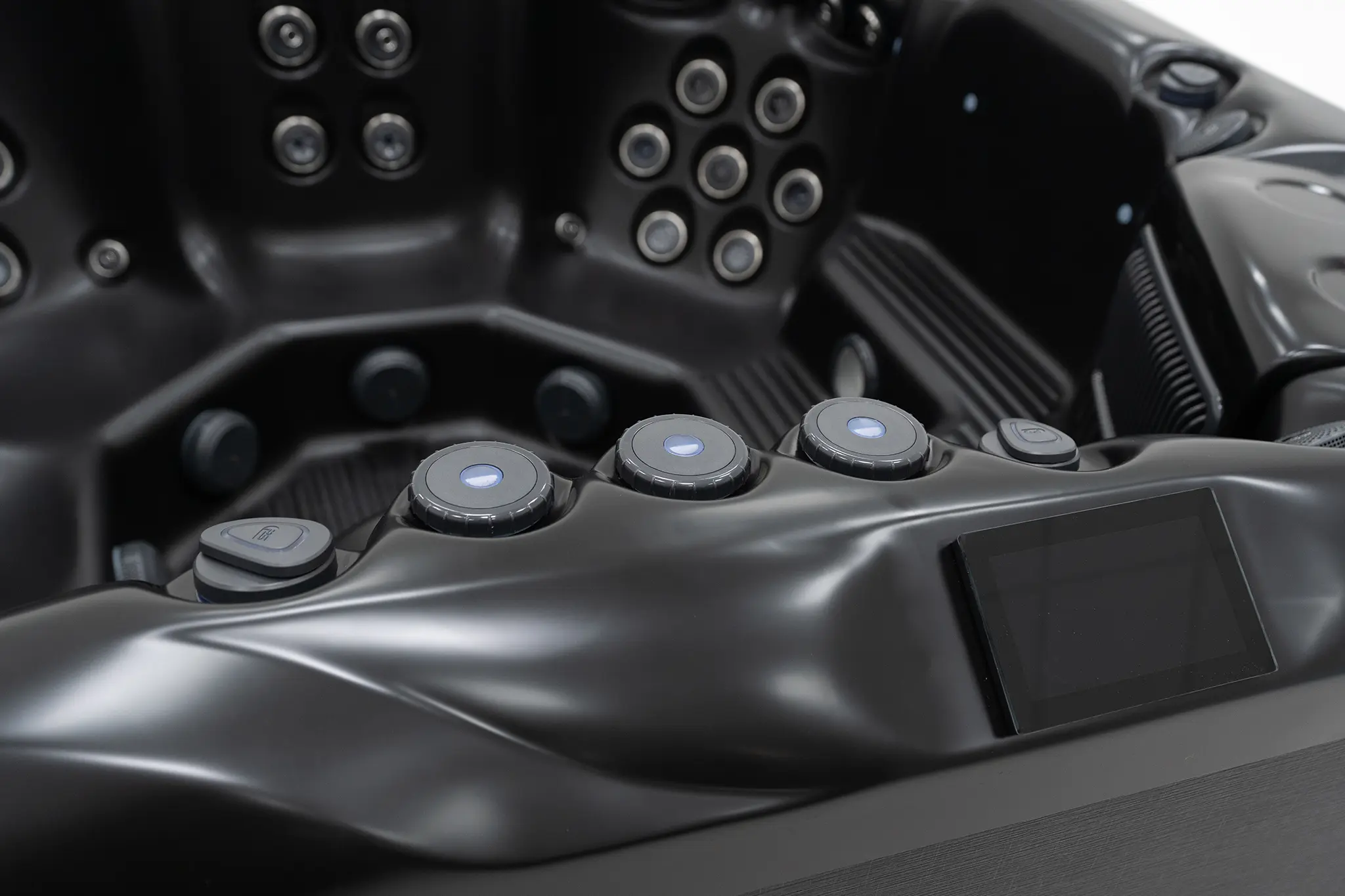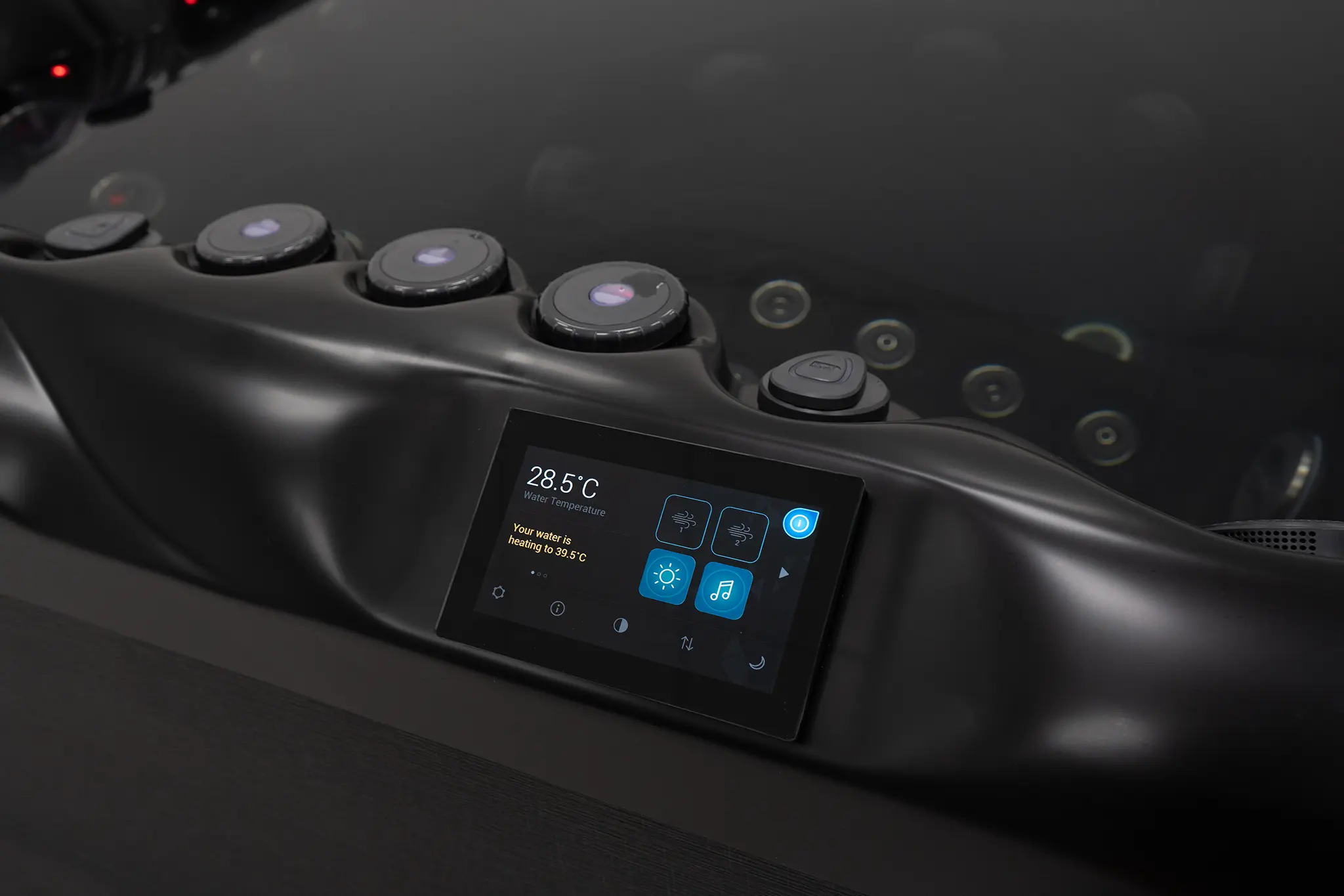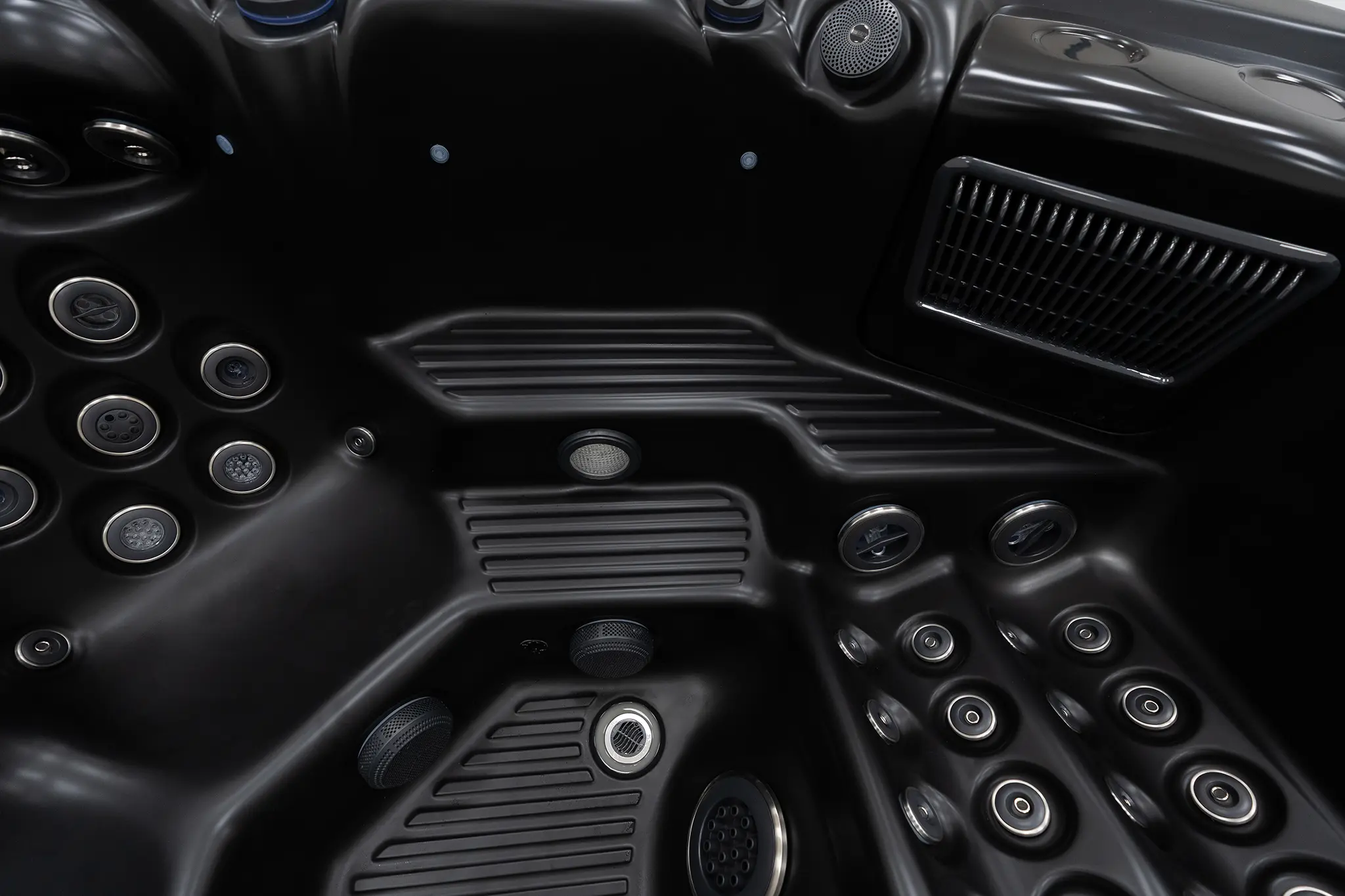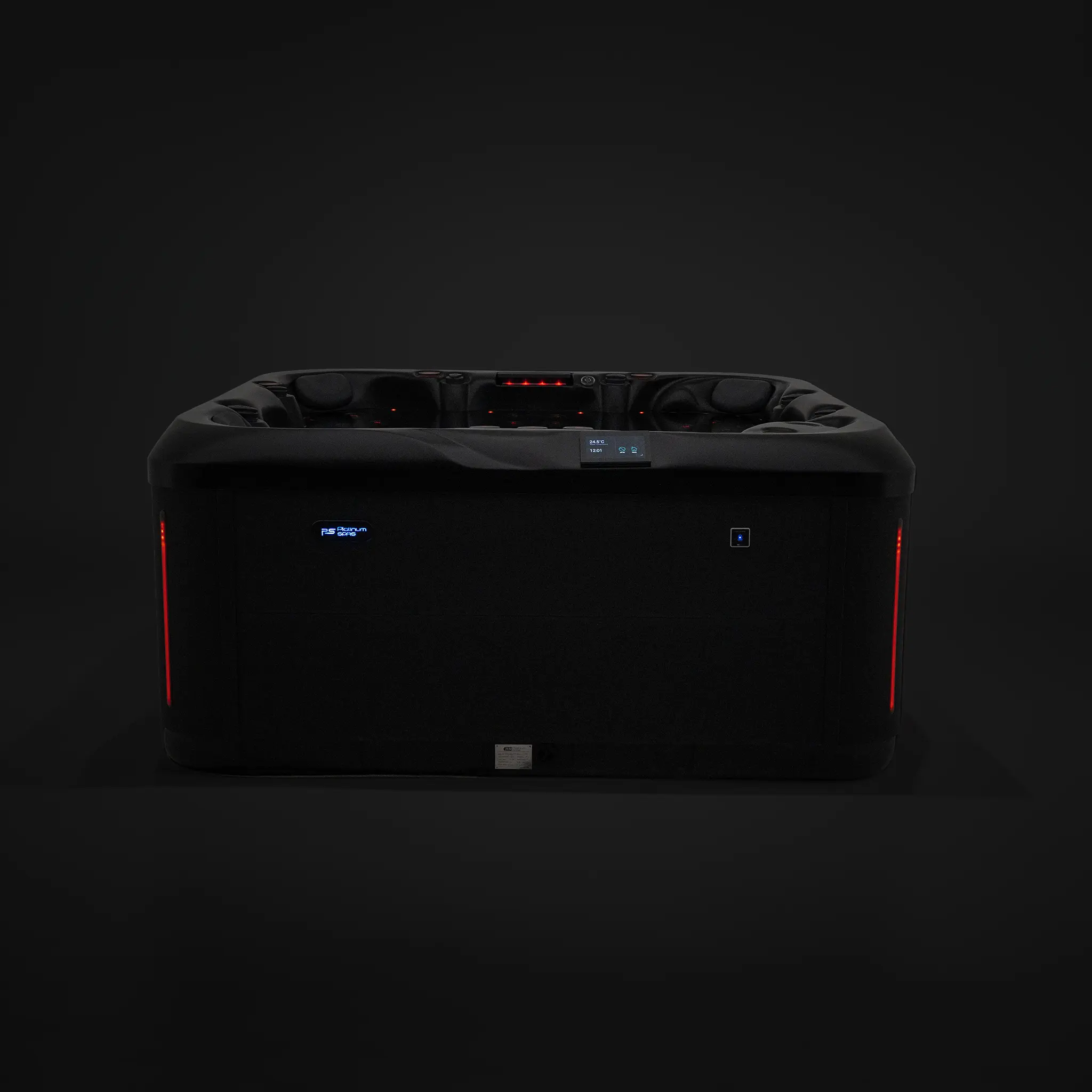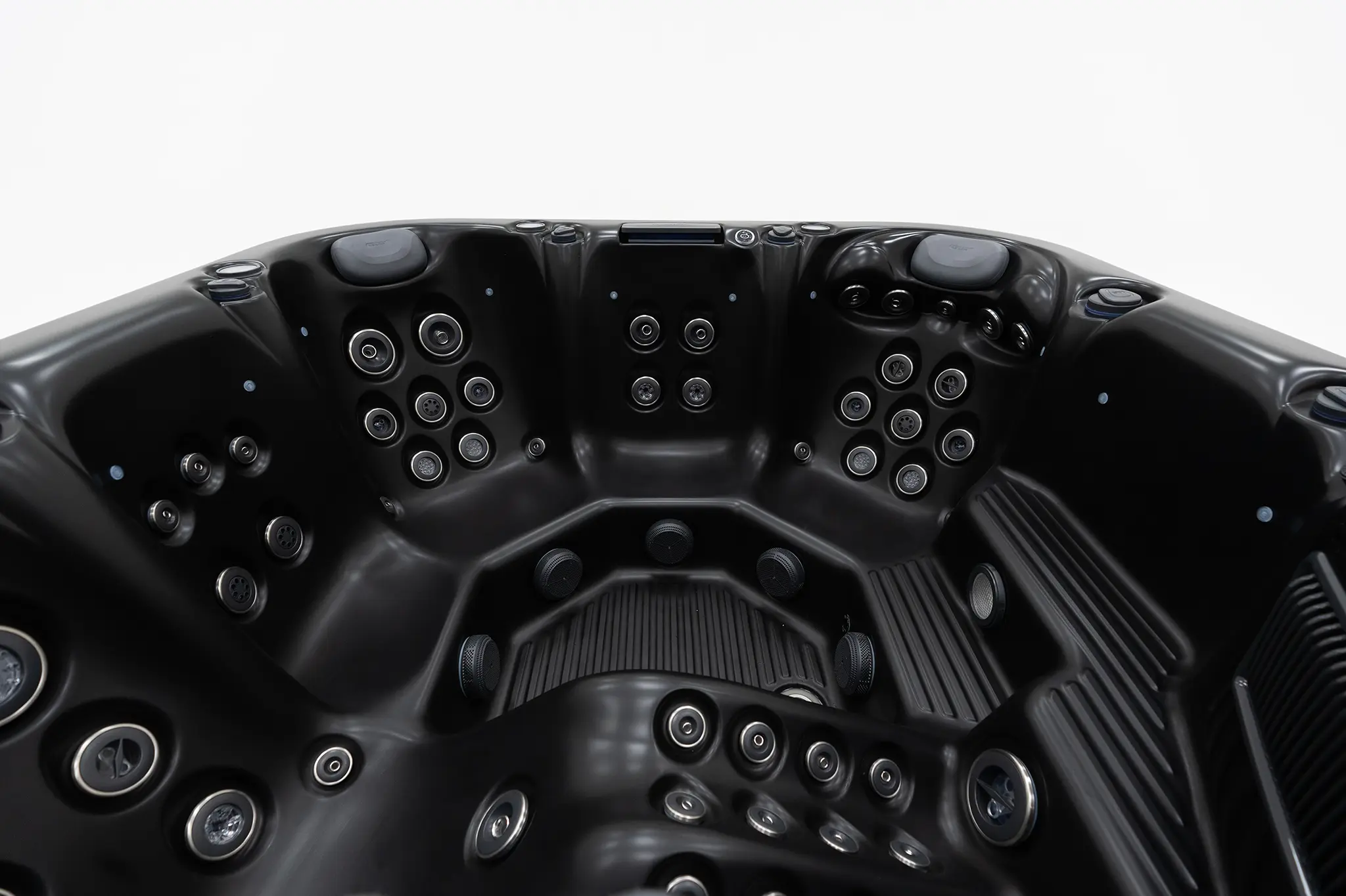 Für die Hydromassage sorgen 62 präzise angeordnete Düsen, unterstützt durch zwei leistungsstarke 3-HP-Massagepumpen sowie eine separate Umwälzpumpe. Die integrierte 3-kW-Heizung gewährleistet eine schnelle und konstante Temperaturregelung. Der Anschluss kann flexibel über 230 V oder 400 V erfolgen.