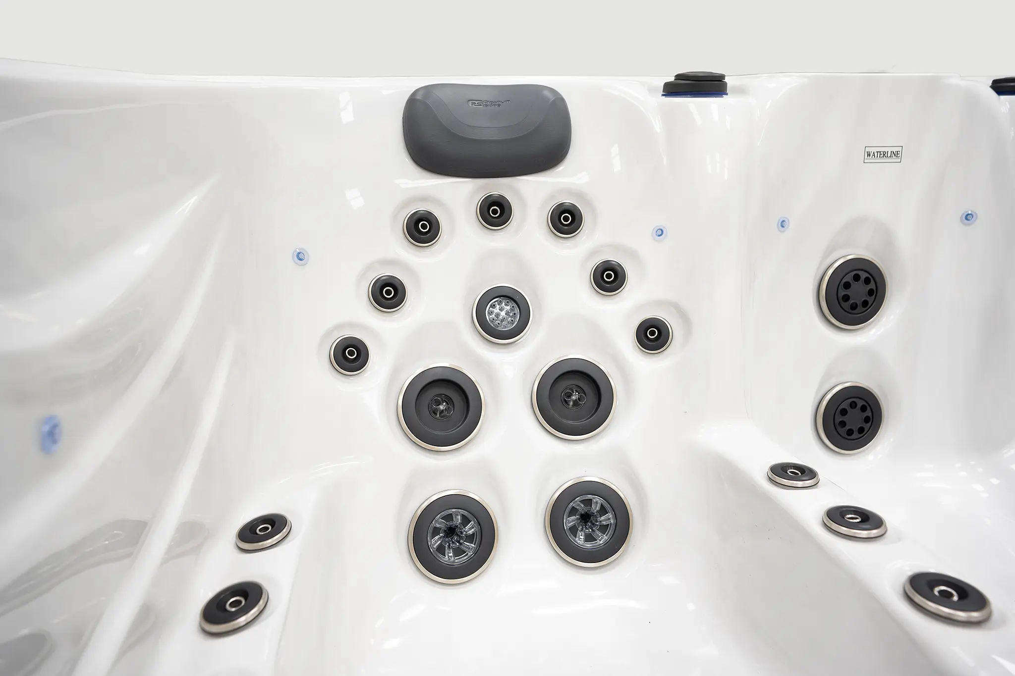 Der Sicily Whirlpool aus der Luxury Range bietet großzügigen Platz für sechs Personen und kombiniert kraftvolle Hydromassage mit Premium-Audiosystem und App-Steuerung. Mit 50 Düsen und 2 × 3 HP Pumpen steht dieses Modell für kompromisslose Performance im Außenbereich.