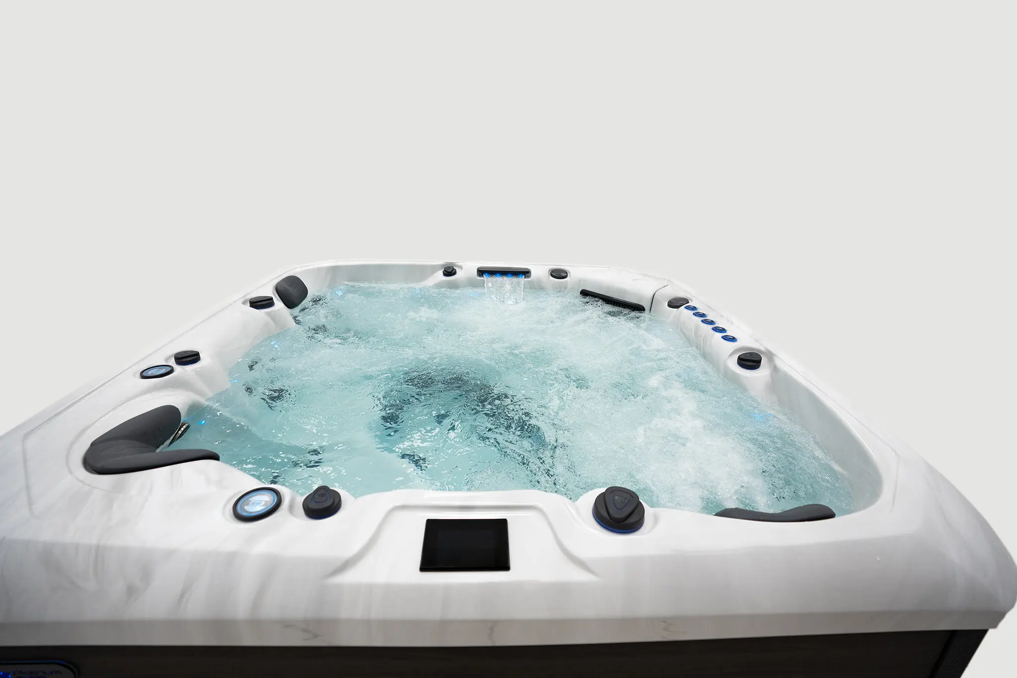 Der Refresh Whirlpool bietet Platz für bis zu sechs Personen und überzeugt mit 49 kraftvollen Massagedüsen sowie einem leistungsstarken Doppelpumpensystem. Ideal für anspruchsvolle Wellnessmomente im eigenen Garten.