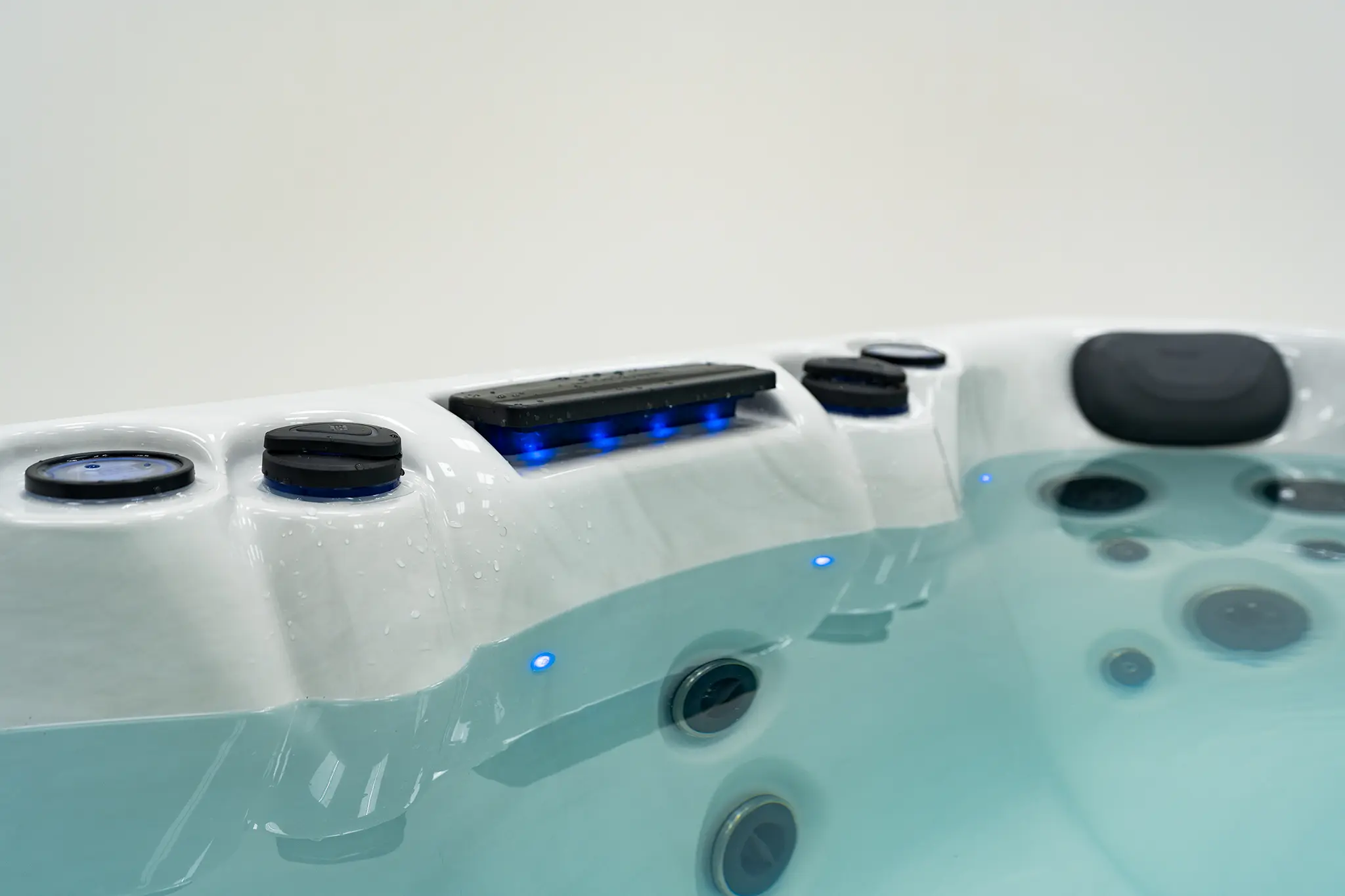 Der Capri Whirlpool aus der Luxury Range verbindet kraftvolle Hydromassage mit hochwertigem Premium-Audiosystem und App-Steuerung. Mit 49 Düsen, 2 × 3 HP Pumpen und exklusiver Ausstattung bietet er luxuriösen Komfort für bis zu vier Personen.