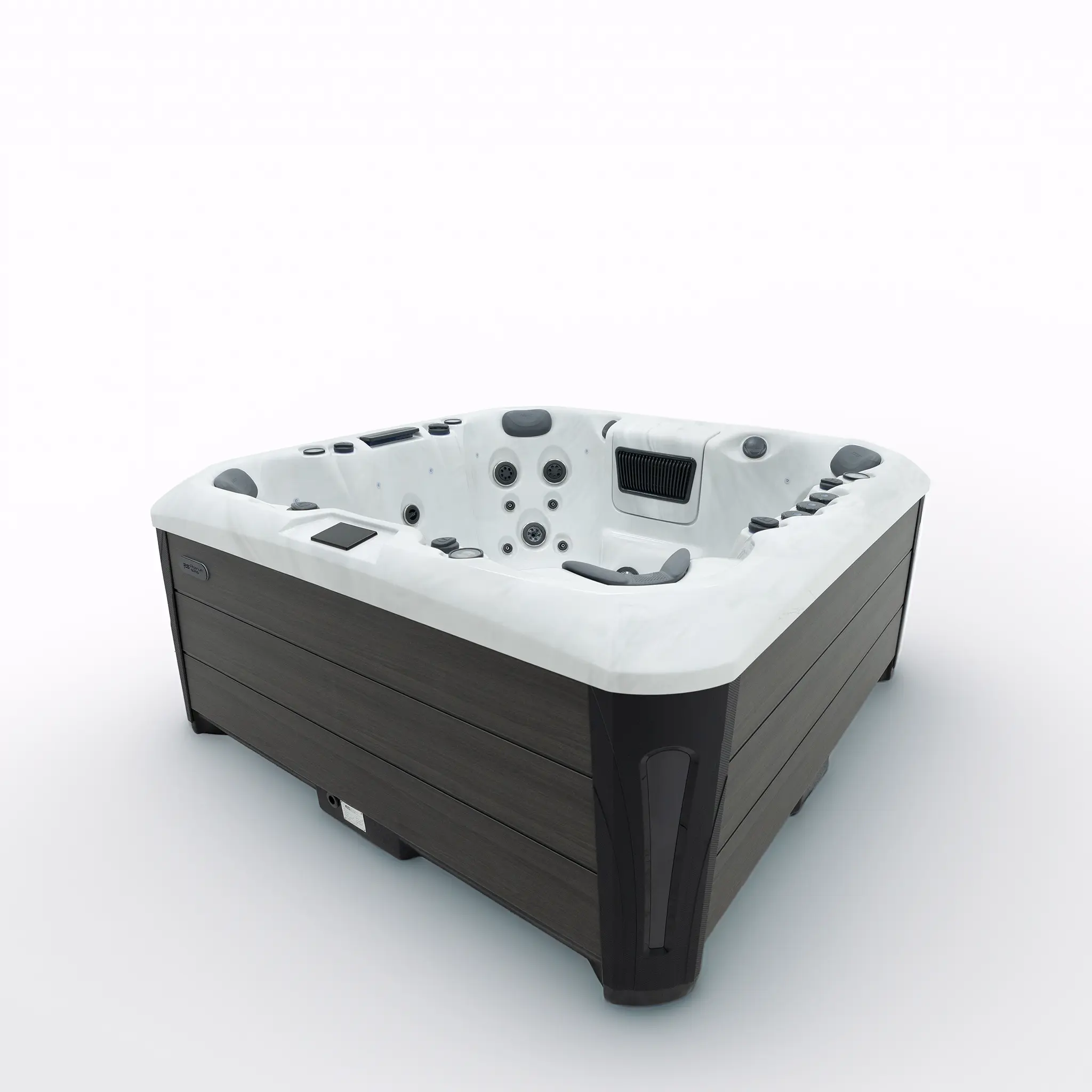 Der Refresh Whirlpool bietet Platz für bis zu sechs Personen und überzeugt mit 49 kraftvollen Massagedüsen sowie einem leistungsstarken Doppelpumpensystem. Ideal für anspruchsvolle Wellnessmomente im eigenen Garten.