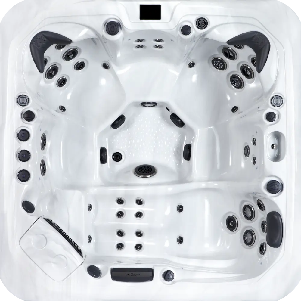 Der Onyx Whirlpool aus der Premium Range bietet intensive Hydromassage und großzügigen Liegekomfort für bis zu fünf Personen. Mit 90 Massagedüsen, vier Massagepumpen und zwei Liegeflächen ist dieses Modell auf maximale Entspannung im Außenbereich ausgelegt.