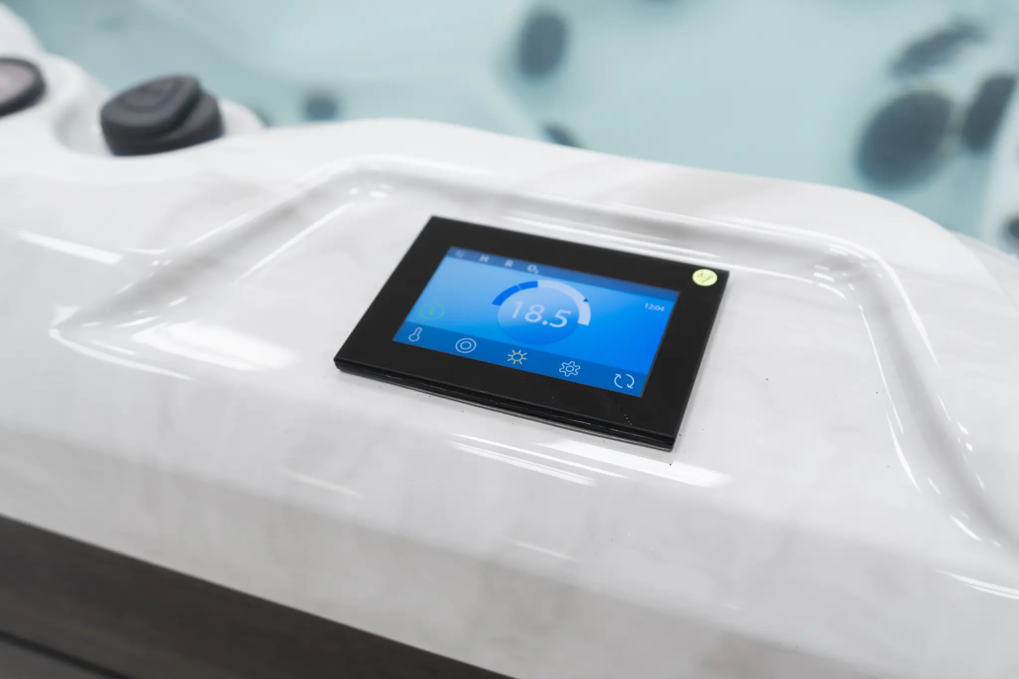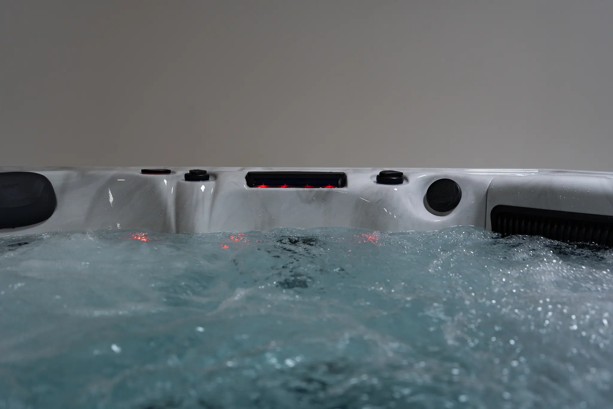 Für die Massageleistung sorgen drei 3-HP-Pumpen in Kombination mit einer separaten Umwälzpumpe. Die integrierte 3-kW-Heizung gewährleistet eine konstante Temperaturregelung. Der Anschluss ist flexibel über 230 V oder 400 V (32 Ampere) möglich.