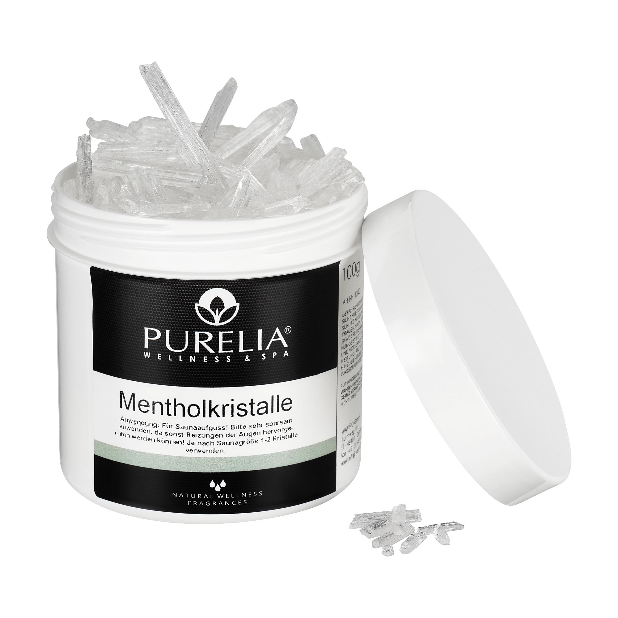 Artikelnummer 21 Kategorien Zubehör, Saunazubehör, Aufgusszubehör Marke: PureliaDie Mentholkristalle naturrein bestehen aus reinem Menthol und sorgen für eine besonders intensive, kühlende Frischewirkung in der Sauna. Bereits kleinste Mengen entfalten beim Kontakt mit der Hitze eine klare, durchdringende Duftwirkung.